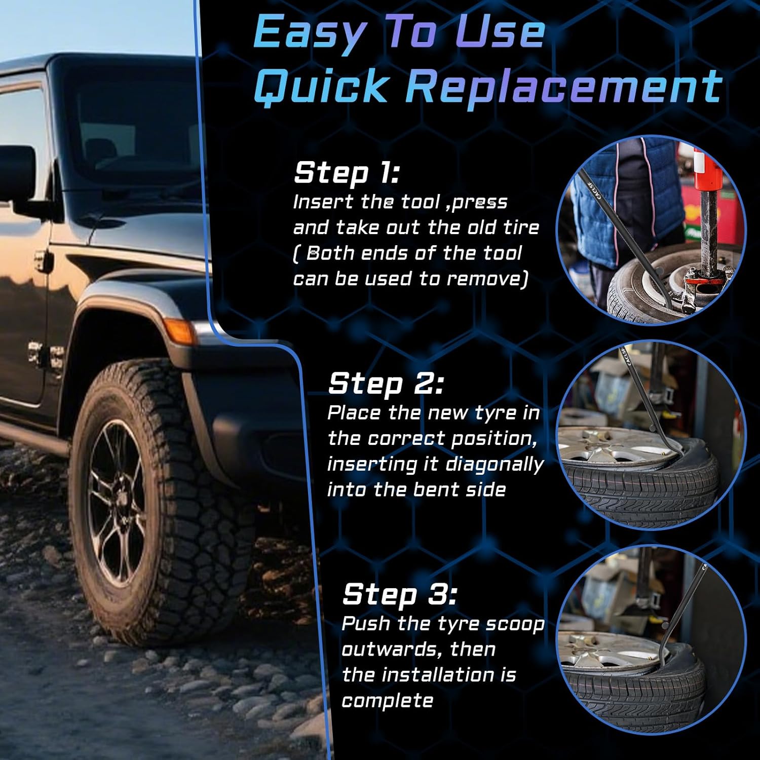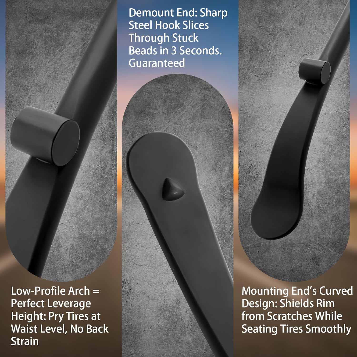 2PCS Tire Iron Bar Set - 34645 Tire Mounting & Demounting Tools for Tubeless Tires | Heavy Duty Tire Spoon, Tire Tools for Changing Tires | Fits Auto, Truck (38 in, 3/4 in, Black)