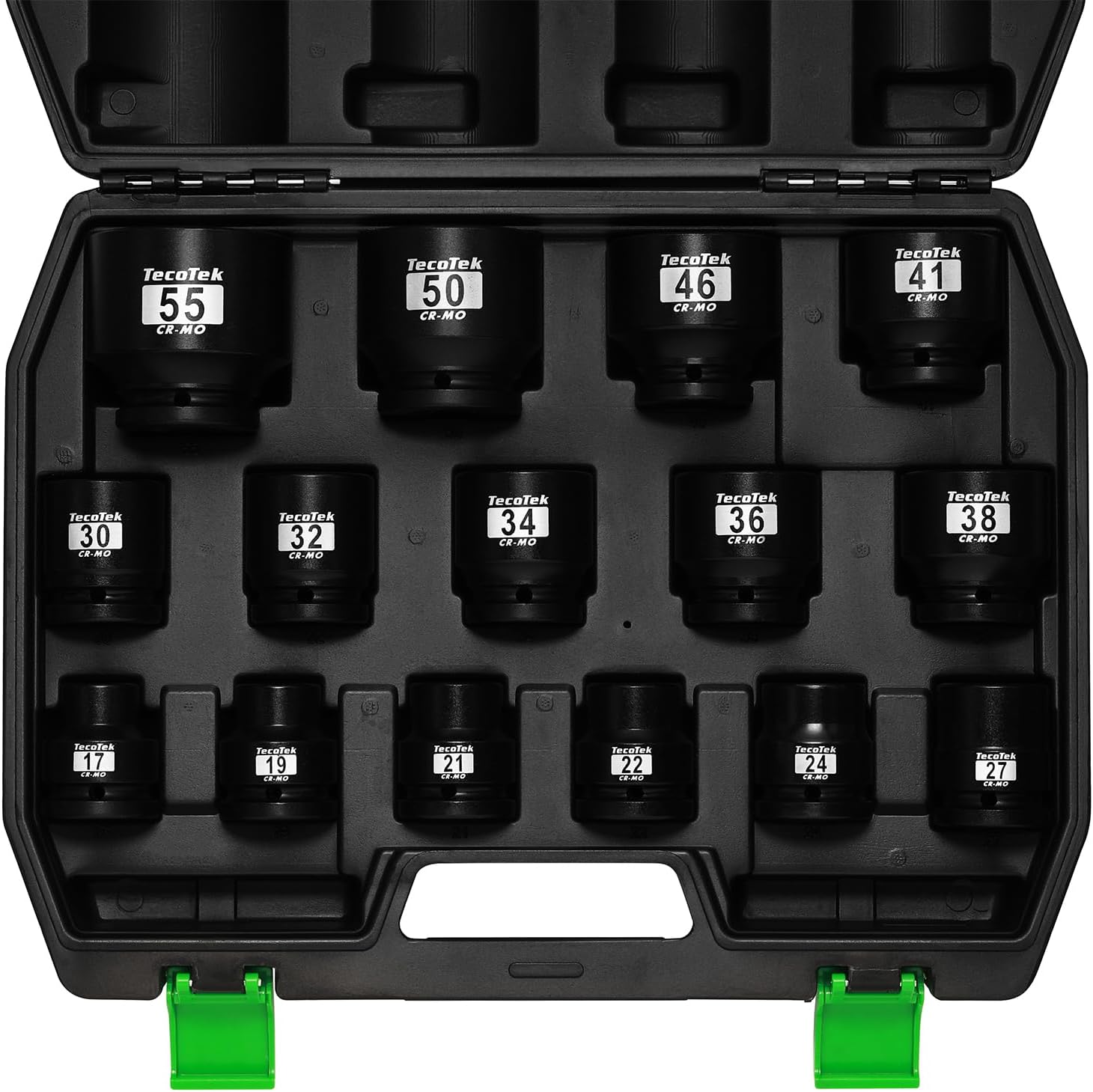 3/4" Drive Shallow 6-Point Impact Socket Set, 15-Piece Heavy Duty Impact Socket Set, CR-MO, Metric (17mm to 55mm), Enhanced Storage Case