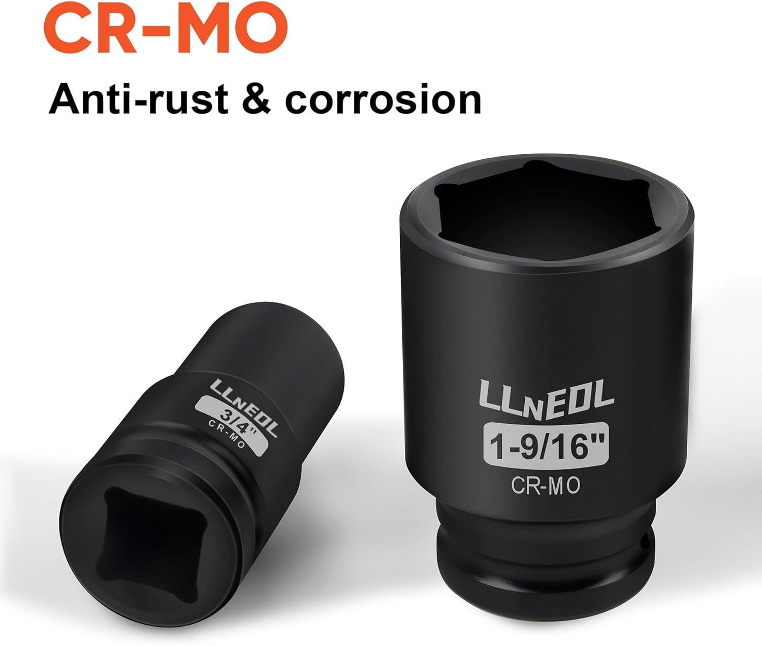 3/4 Inch Drive Socket Set, 12Pcs Impact Deep/Jumbo Sockets, Standard SAE 3/4" to 1-9/16", 6-Point CR-MO Heavy-Duty Big Socket Set for Large Vehicle & Equipment Maintenance