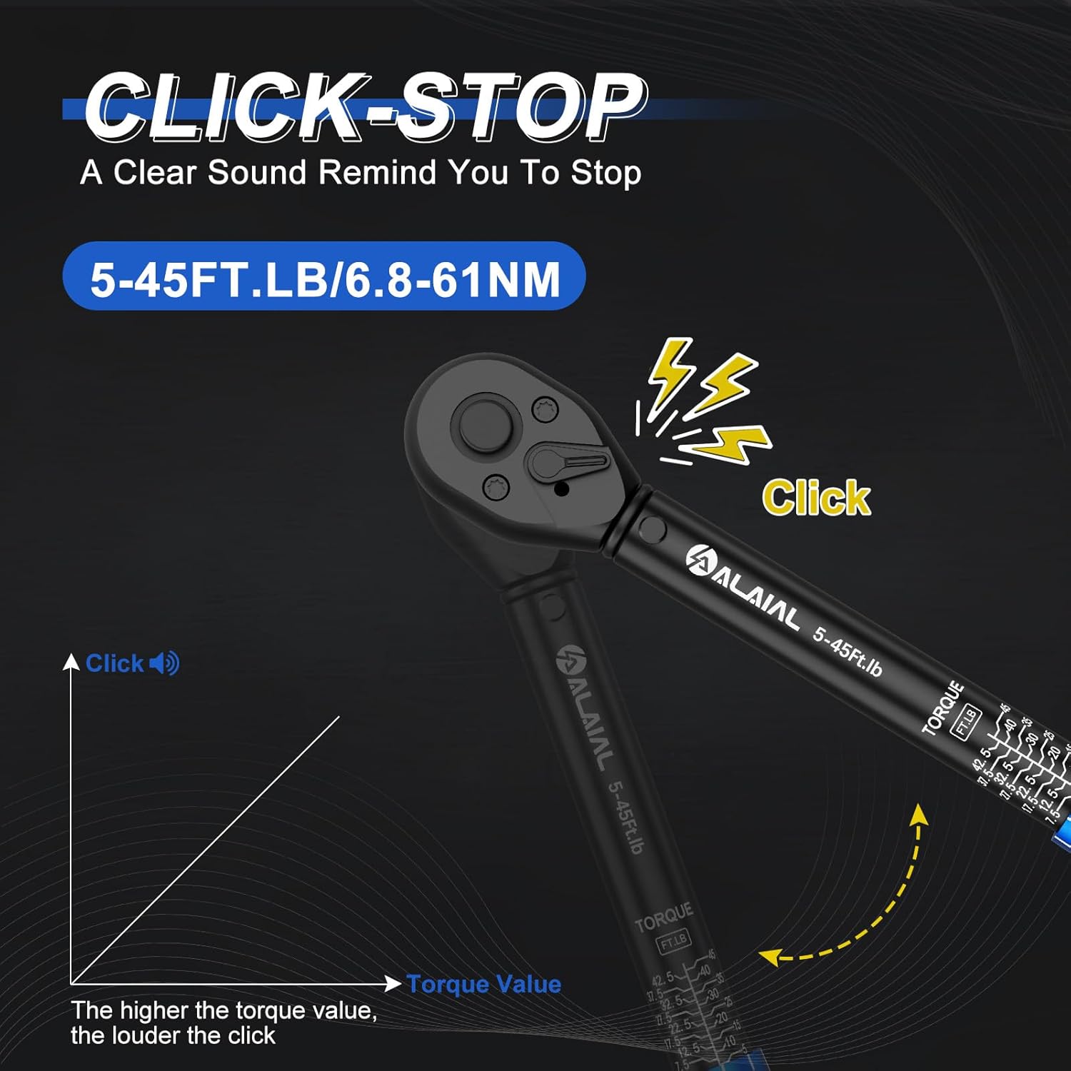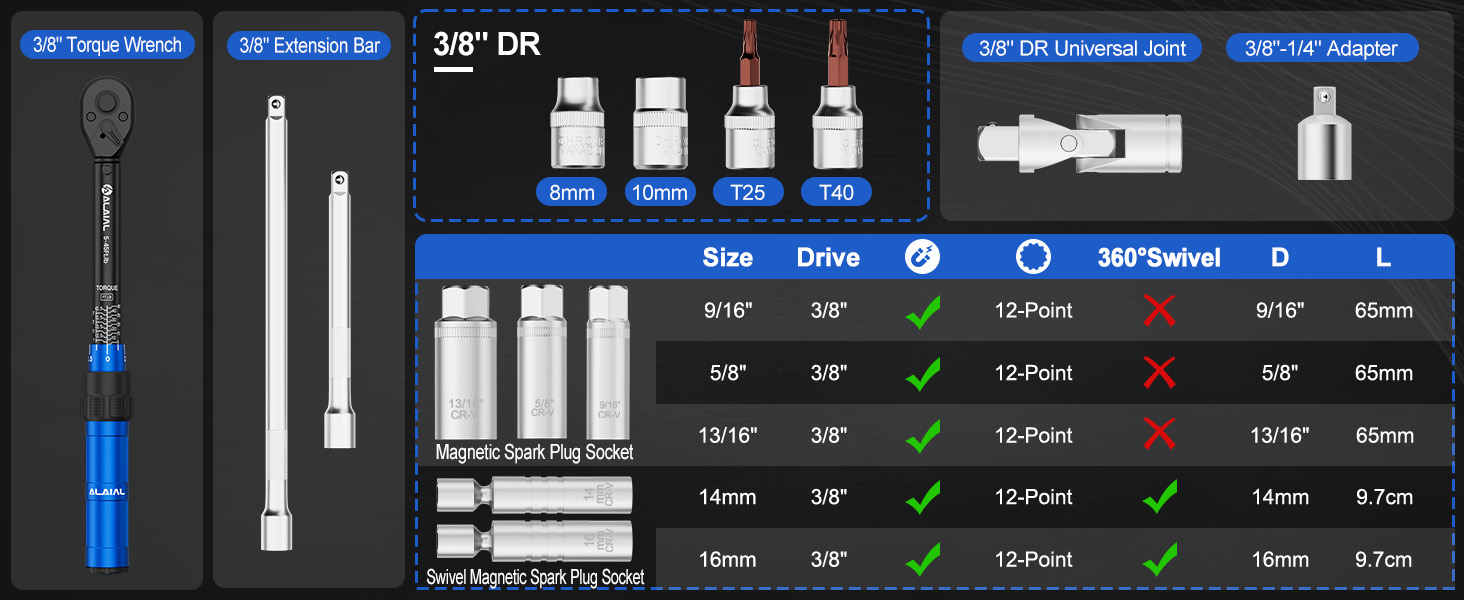 3/8 Inch Drive Magnetic Spark Plug Socket Set with Click Torque Wrench 5-45FT.LB/6.8-61Nm, 14PCS Swivel Spark Plug Socket, Universal Joint, Extension Bar, CR-V Steel for Easy Spark Plug Removal