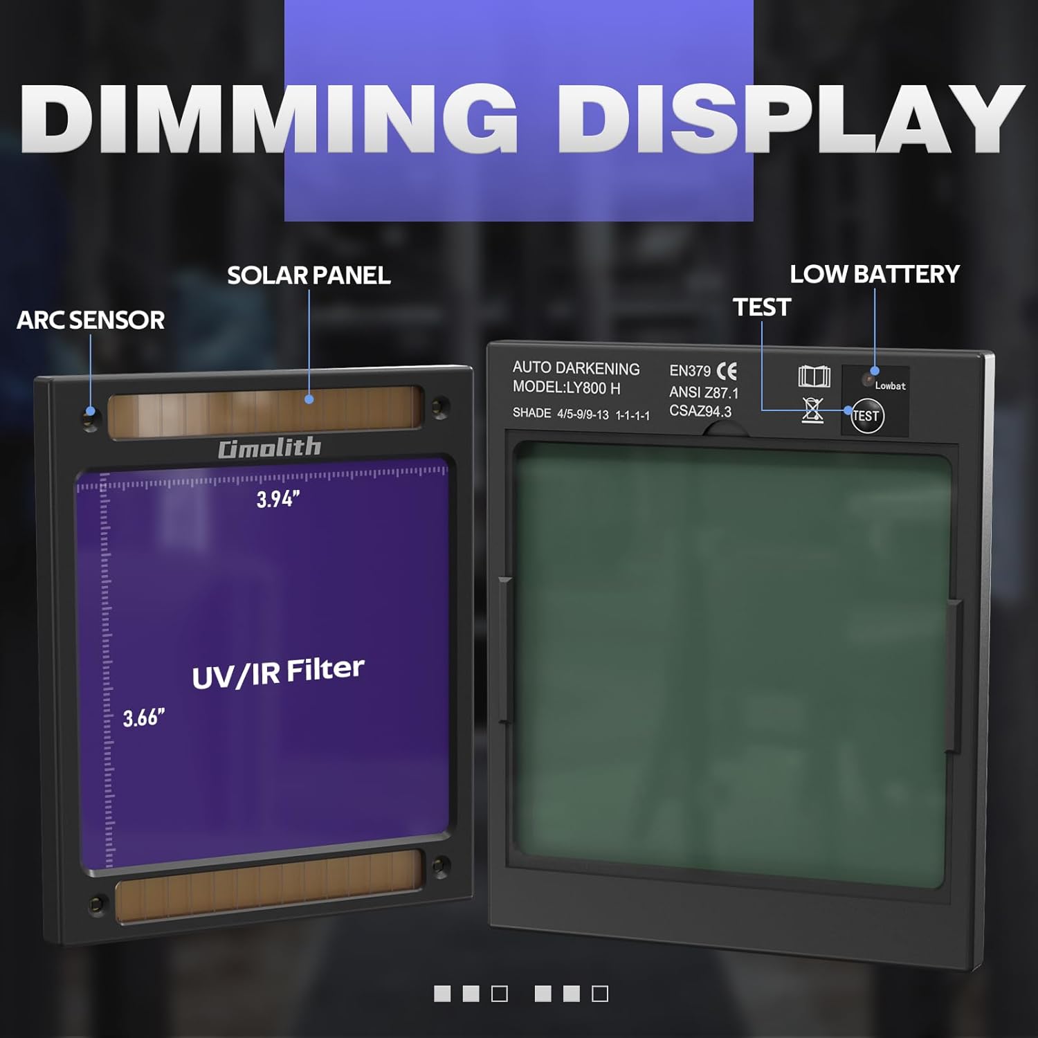 3.93"X3.66" Auto Darkening Welding Helmet with Light, 1/1/1/1 Top Optical Clarity, 4 Arc Sensor Wide Shade 4/5-9/9-13 for TIG MIG STICK CUT Welding Hood Welder Mask