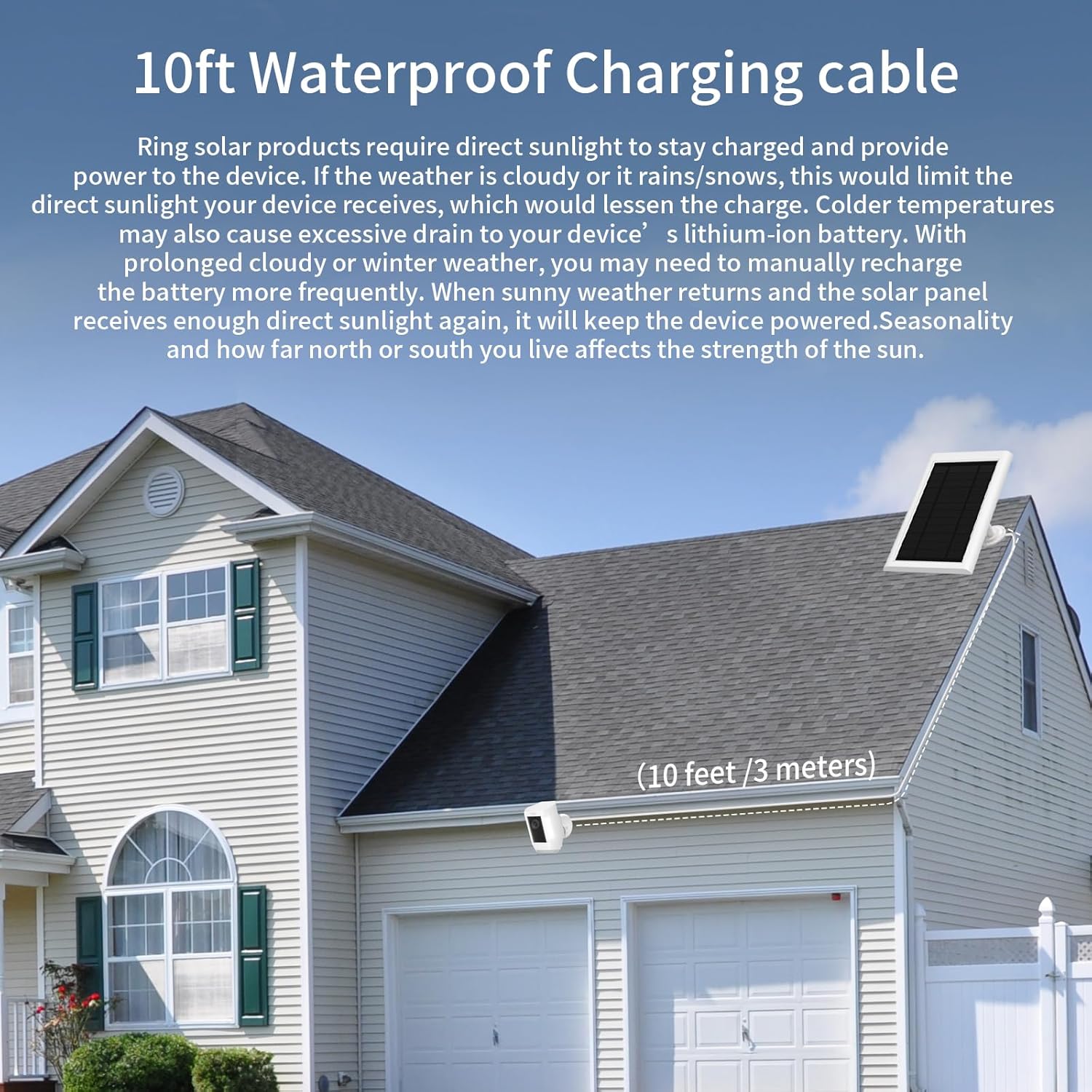3 Pack Solar Panel for Ring Camera(2nd Generation) Dustproof Waterproof 5W Solar Panel with 10FT/3M Long Cable for Stick Up & Pro Spotlight Cam Battery for Security Camera