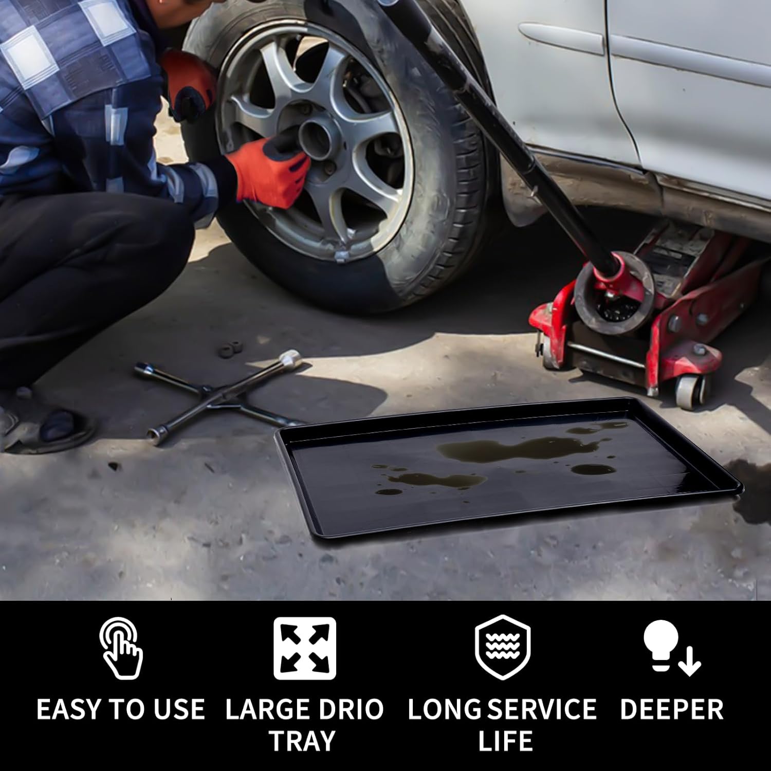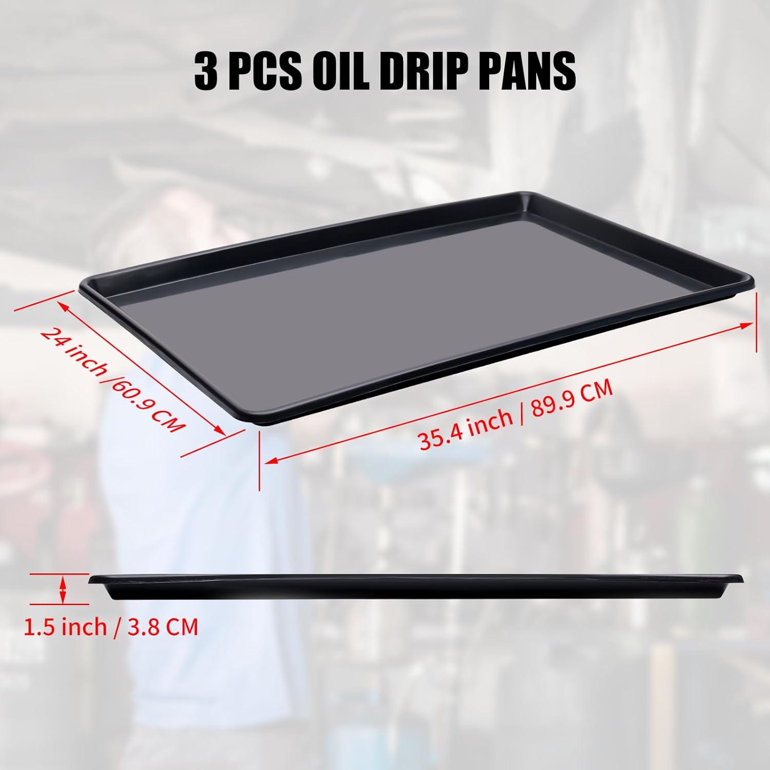 3 Pcs Extra Large Oil Drip Pan for Car - 35.4 x 24 x 1.5 Inches Plastic Auto Oil Catch Tray with 2 Pairs of Gloves, Engine Oil Spill Catcher for Garage, Leak Prevention & Easy Storage