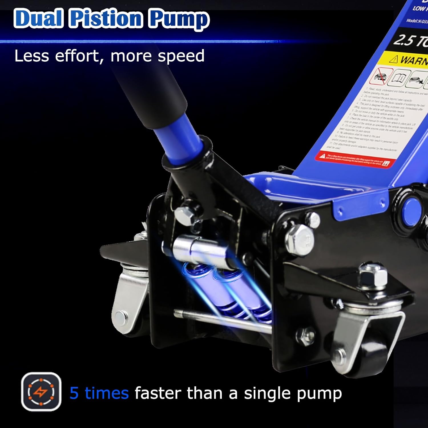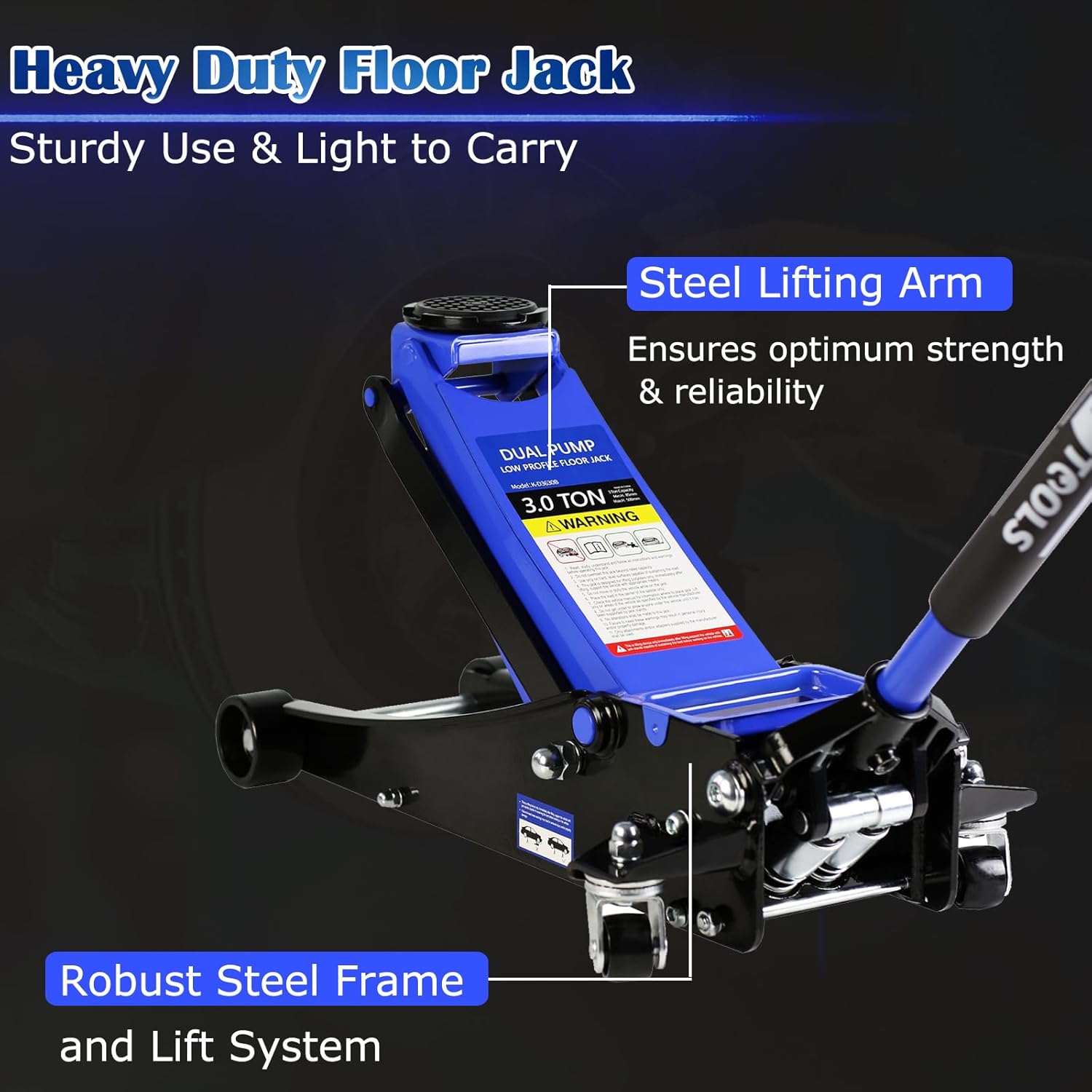 3 Ton Low Profile Floor Jack, Professional Low Profile Hydraulic Jack, Heavy Duty Steel Racing Floor Jack with Dual Piston Quick Lift Pump, 3 Ton (6,600 lb) Capacity, Lift Range 3.3"-18.5"