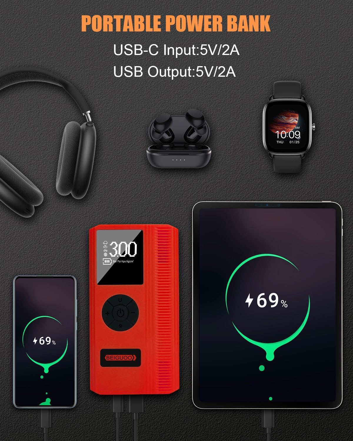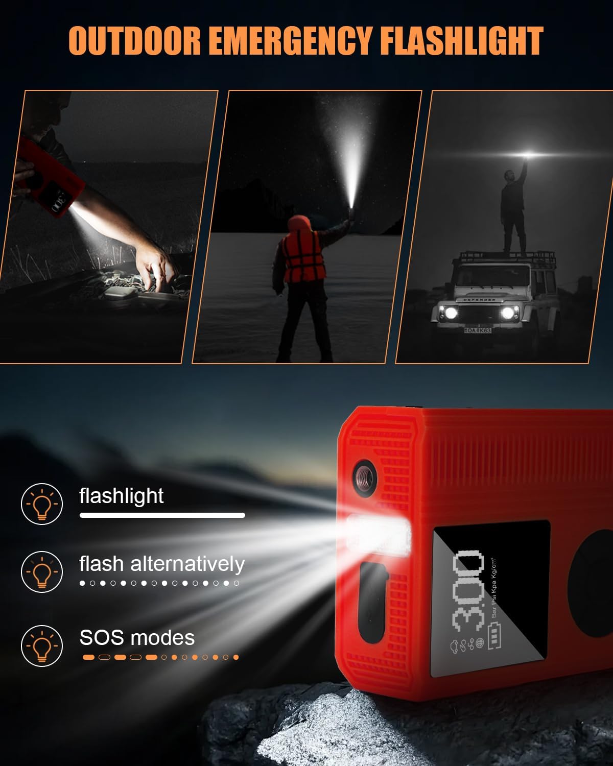 3000A Jump Starter with Air Compressor, Portable Car Battery Booster (8L Gas/6L Diesel) with 150PSI Auto-Shutoff Tire Inflator, 12V Jump Box Car Battery Jump Starter with LED Light