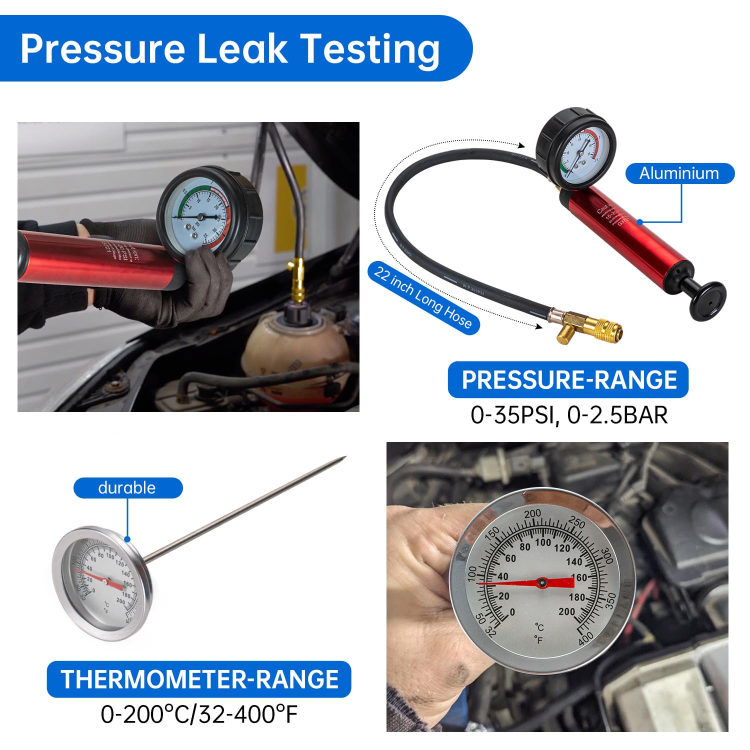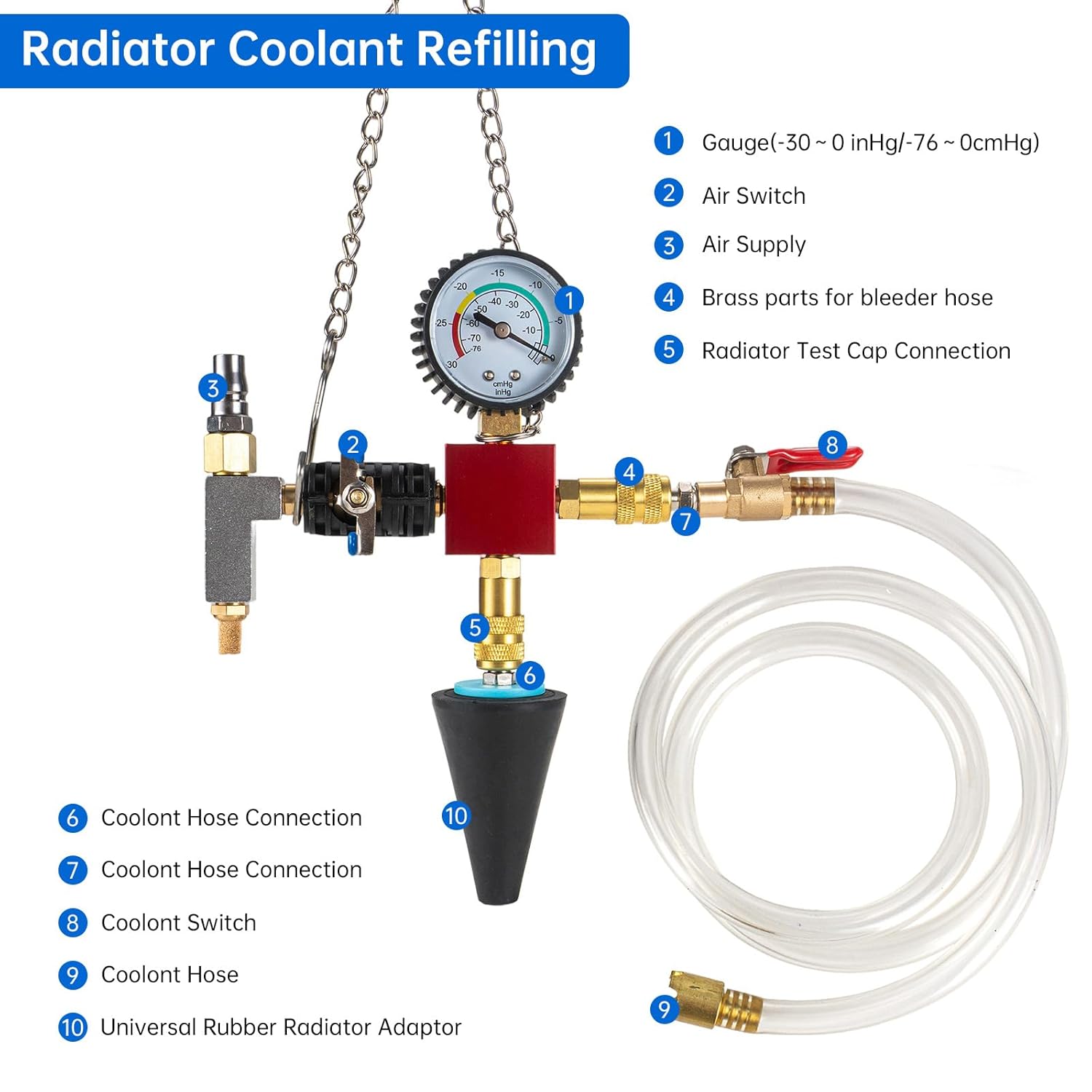 31PCS Radiator Coolant Pressure Tester Kit, Cooling System Radiator Leak Tester and Vacuum Refill Kit for Automotive Cooling System Water Tank Leakage Detection