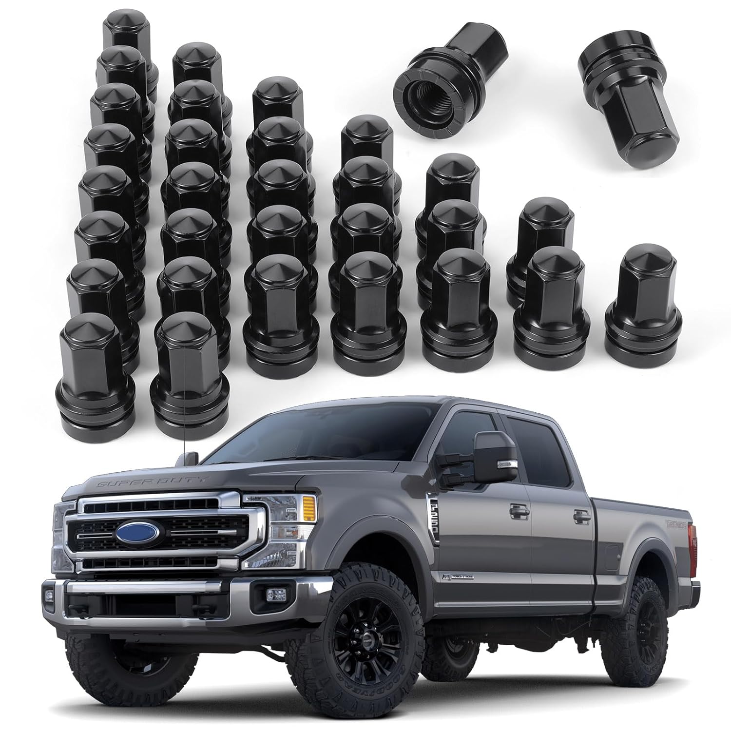 32 Pcs M14x1.5 One-Piece Design Chrome Lug Nuts for 2017-2025 Ford F250 F350 Super Duty HCPZ-1012-B HCPZ-1012-A (Chrome)