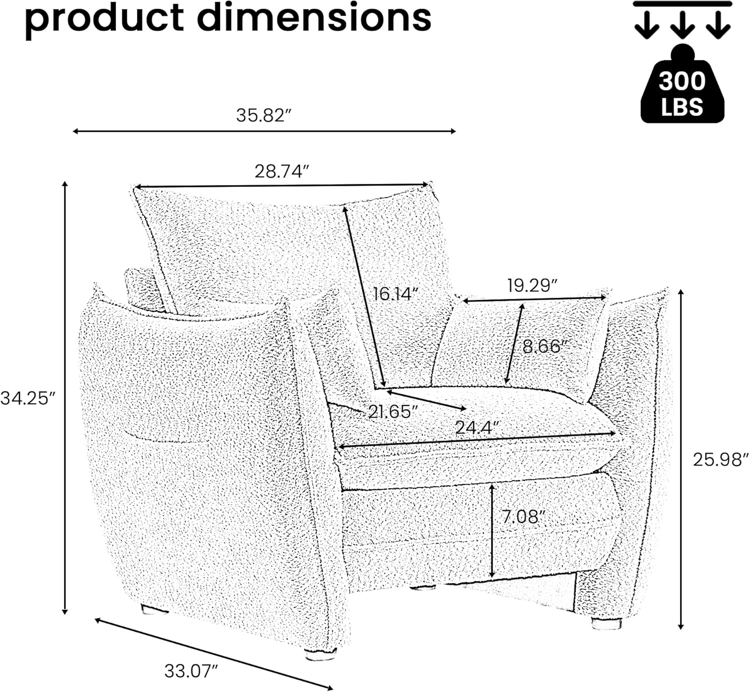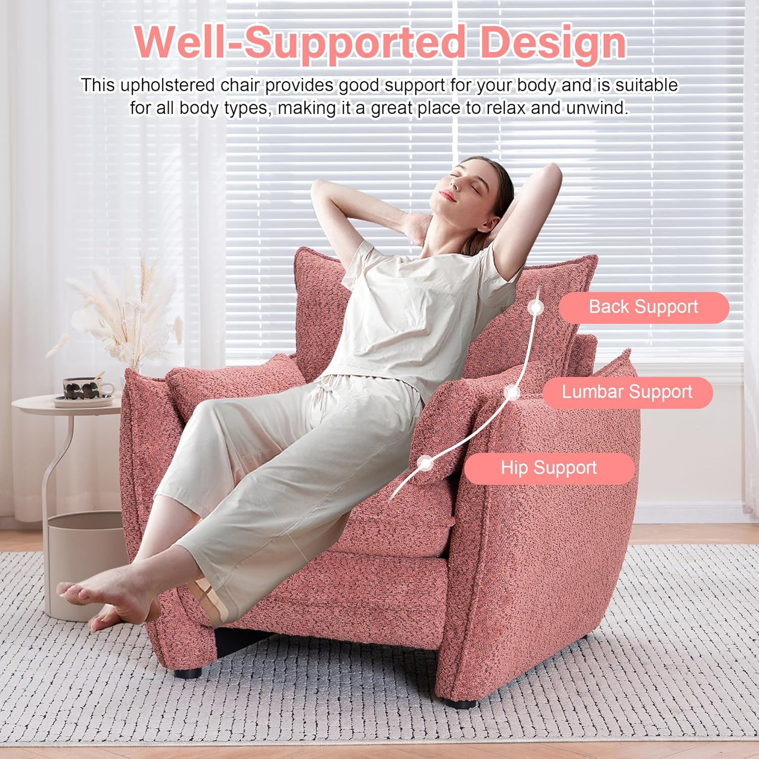 35.82" Upholstered Oversized Accent Chair Wide with Pillows, Chenille Deep Seat Reading Oversized Armchair Modern Comfy, for Living Room,Bedroom,Apartment,Office (Pink)