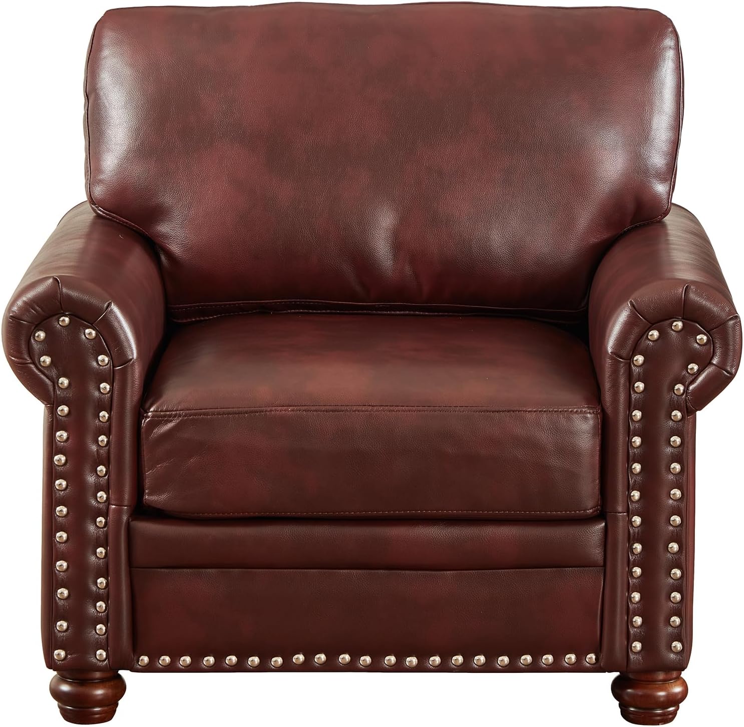 Classic Elegance Single Seat Chair with Rolled Armrests and Nailhead Trim, Sturdy Wood Legs, Comfortable Faux Leather Upholstery - Traditional Living Room Accent Chair
