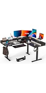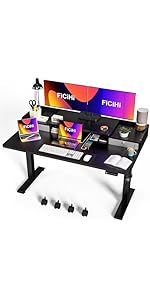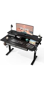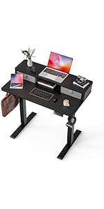 35x20 Inch Standing Desk with Double Drawers, C-Clamp Mount Compatible, Electric Adjustable Height Computer Stand Up Desks, Home Office Sit Stand Table with 3 Preset Heights & 2 Hooks, Black