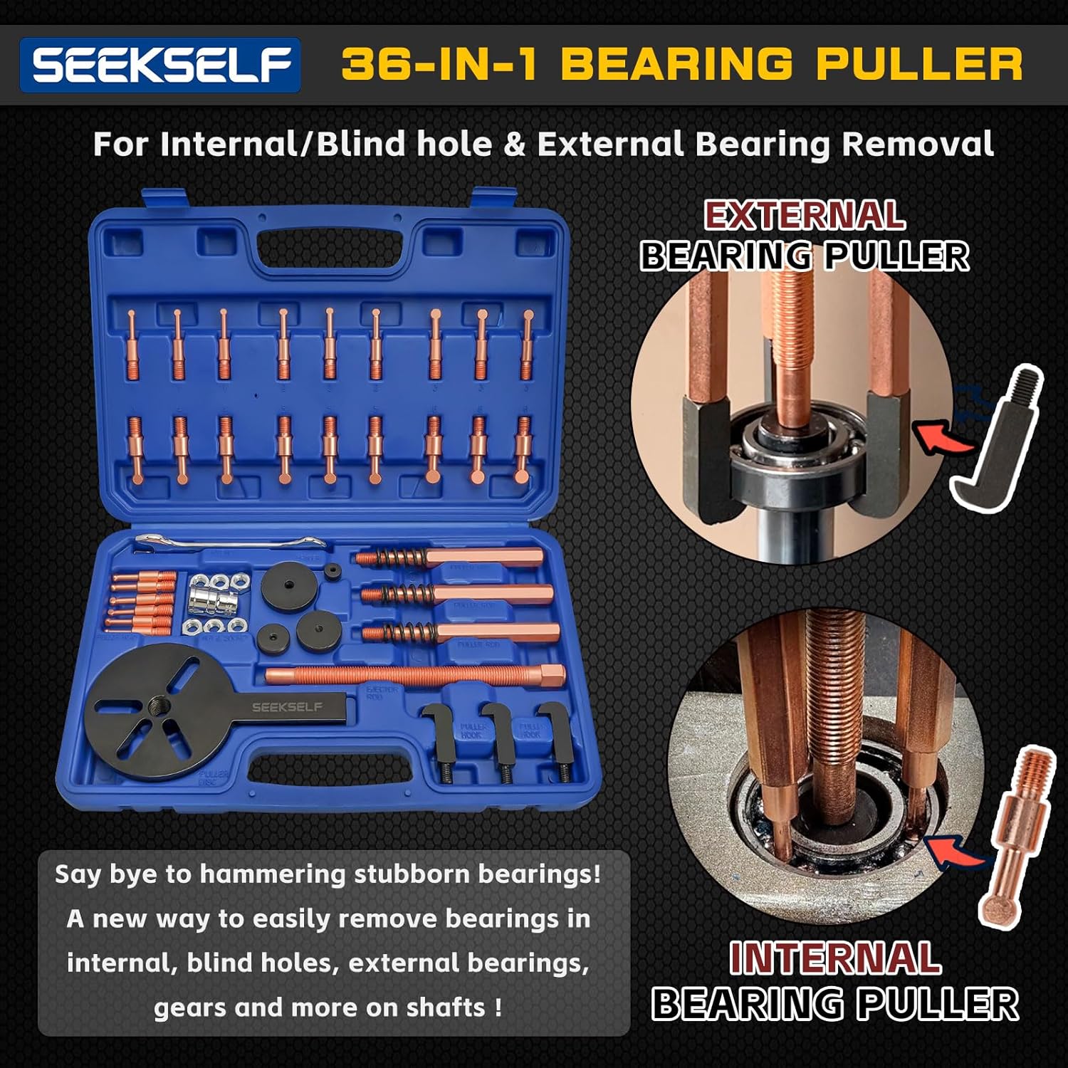 Internal bearing puller: Comes with 6 different sizes of collets, suitable for bearings of various shapes and sizes.