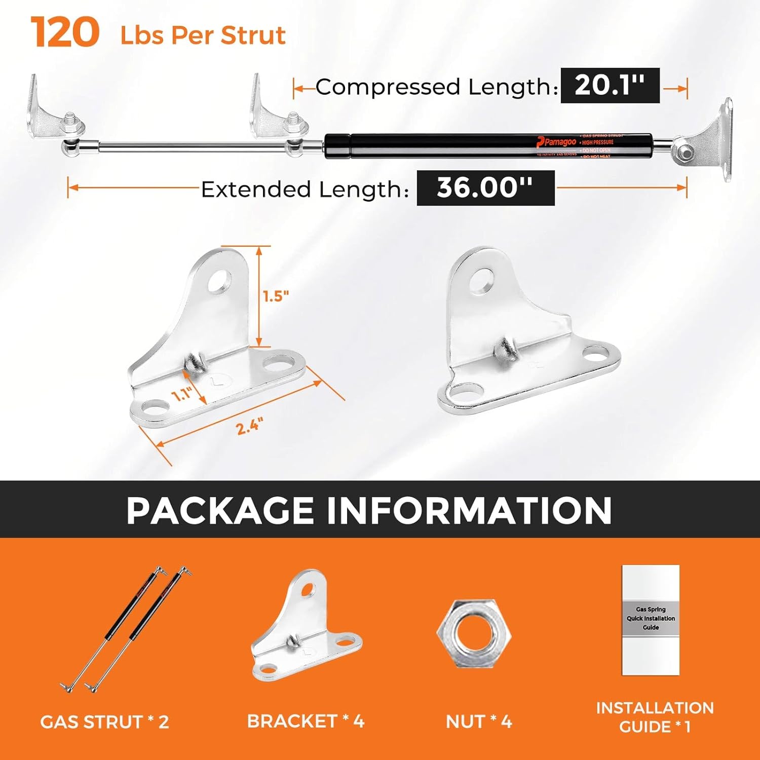 36 Inch 120 Lb(96-132lbs) 534N Gas Struts for Heavy Lid, Rv Storage Bed Lift Heavy Duty Shock,36'' Spring Kit with Mounting Brackets, 2pack