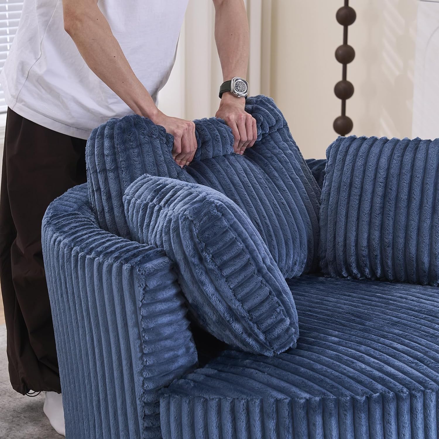 360-Degree Swivel Accent Chair Plush Corduroy & Foam-Filled Chaise Lounge Chair for Indoor Living Room & Bedroom, 40" Oversized Modern Design Round Barrel Chair, Comfortable Seating, Blue