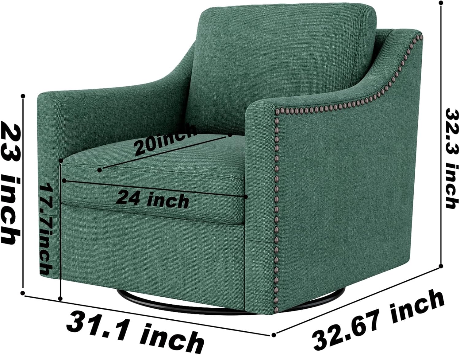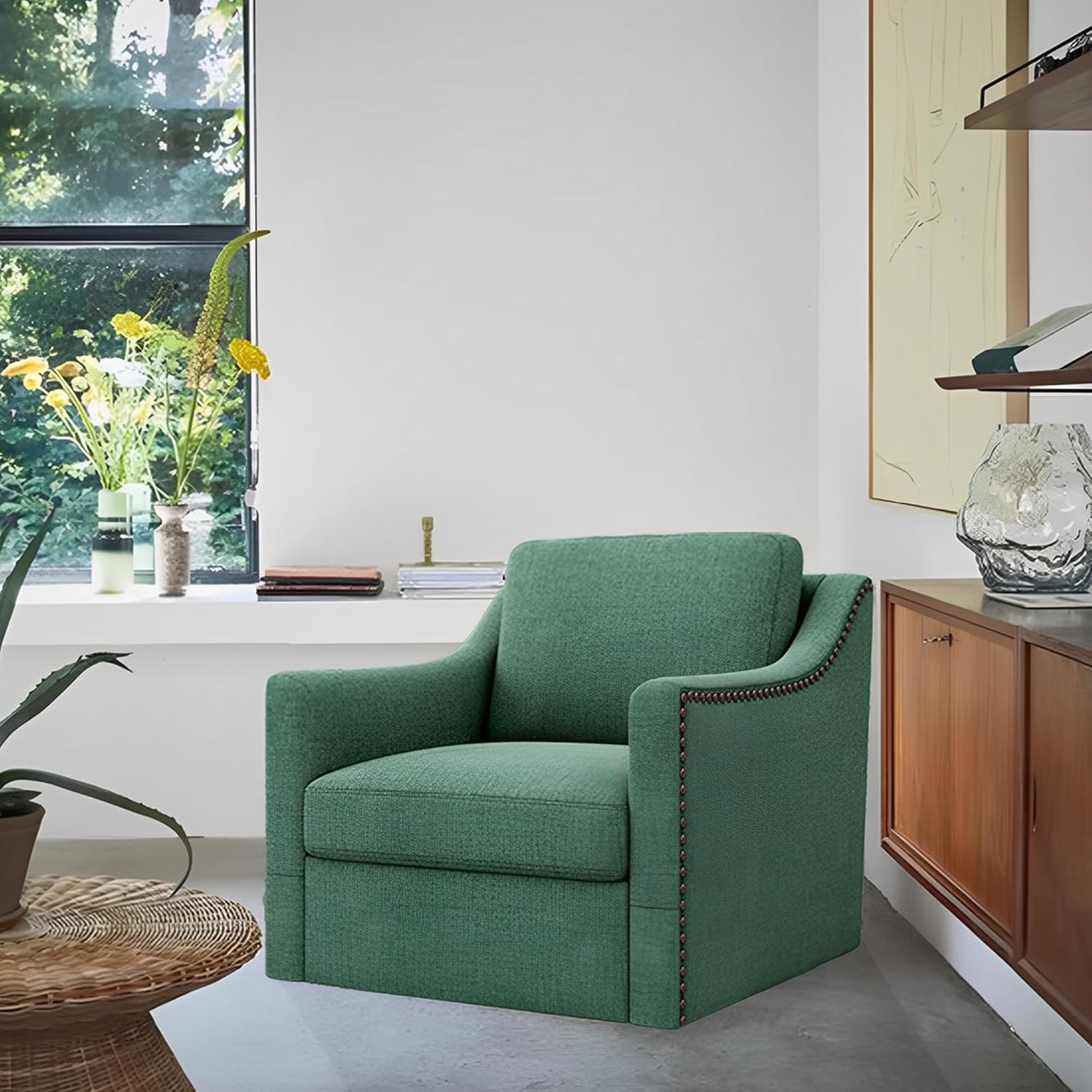 360 Degree Swivel Armchair Cotton linen skin-friendly fabric Ergonomic design Brass nail decorative armchair Living room chairs Bedroom chairs Living room chairs Black legs Suitable for indoor homes