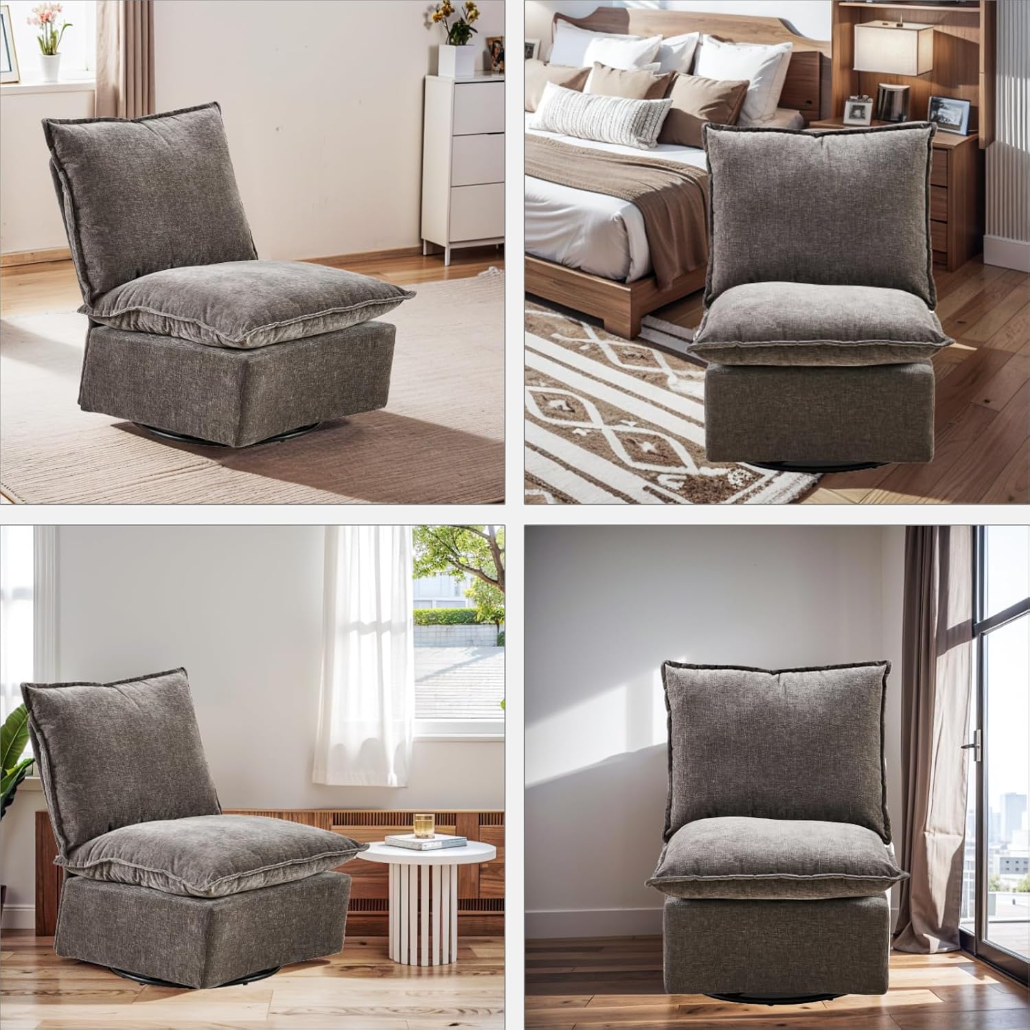 360°Swivel Accent Chair,Fabric Living Room Chairs Comfy Accent Chair with Solid Metal Base, Swivel Chairs for Living Room & Bedroom,Dark Gray