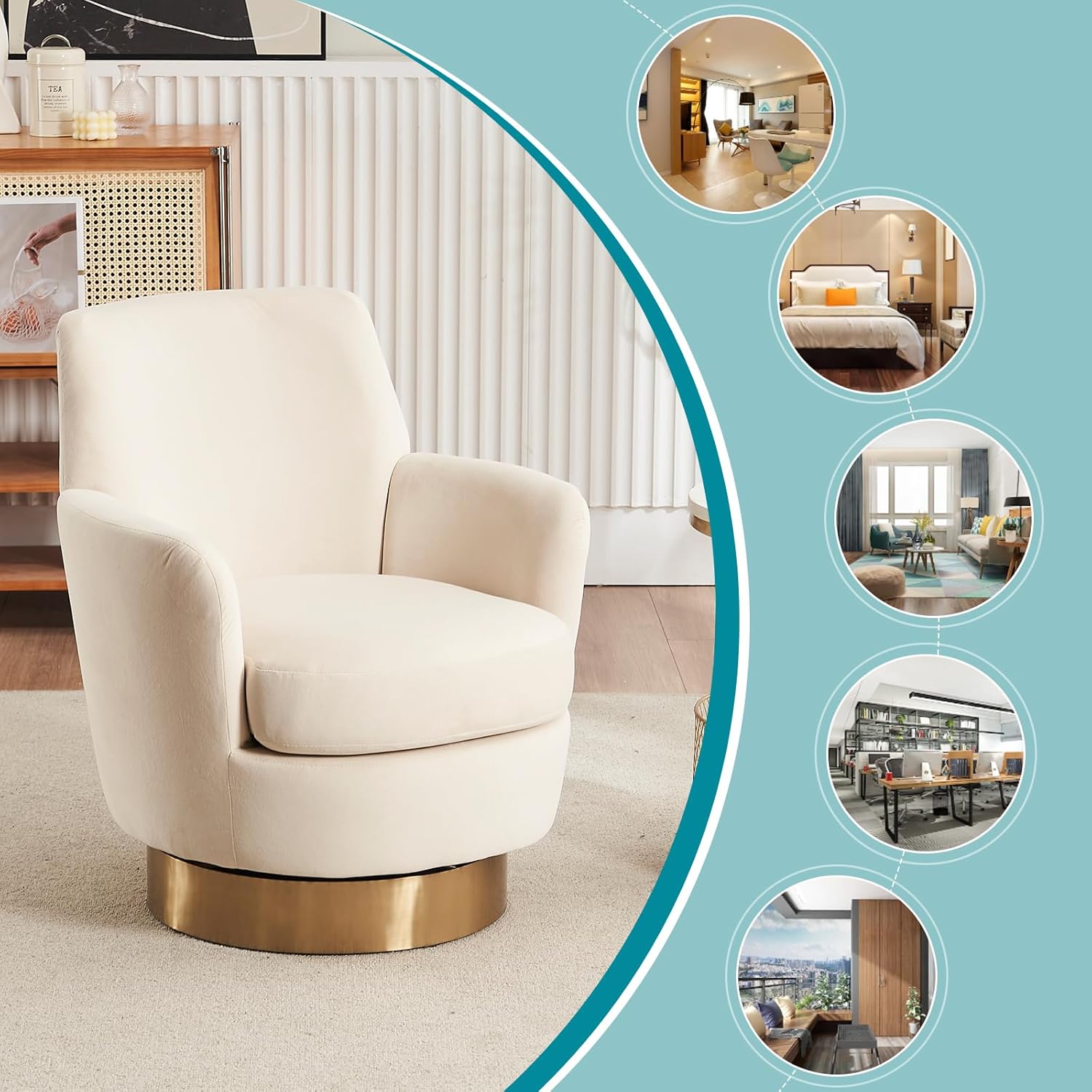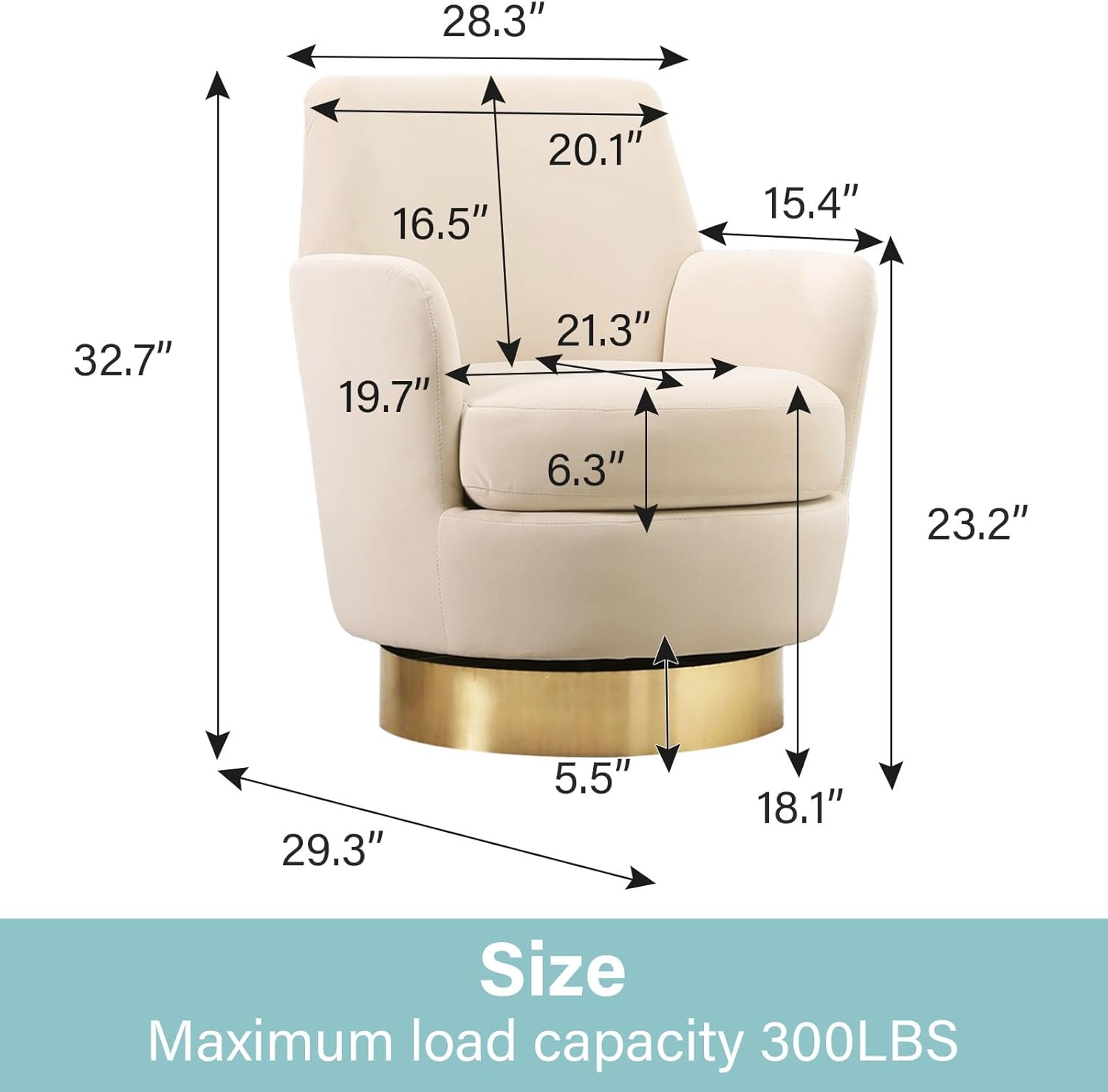 360° Swivel Barrel Chair Set of 2, 28.3" W Comfy Velvet Swivel Accent Chairs, Modern Round Single Accent Chair with Gold Metal Base for Living Room, Bedroom, Office (Beige*2)