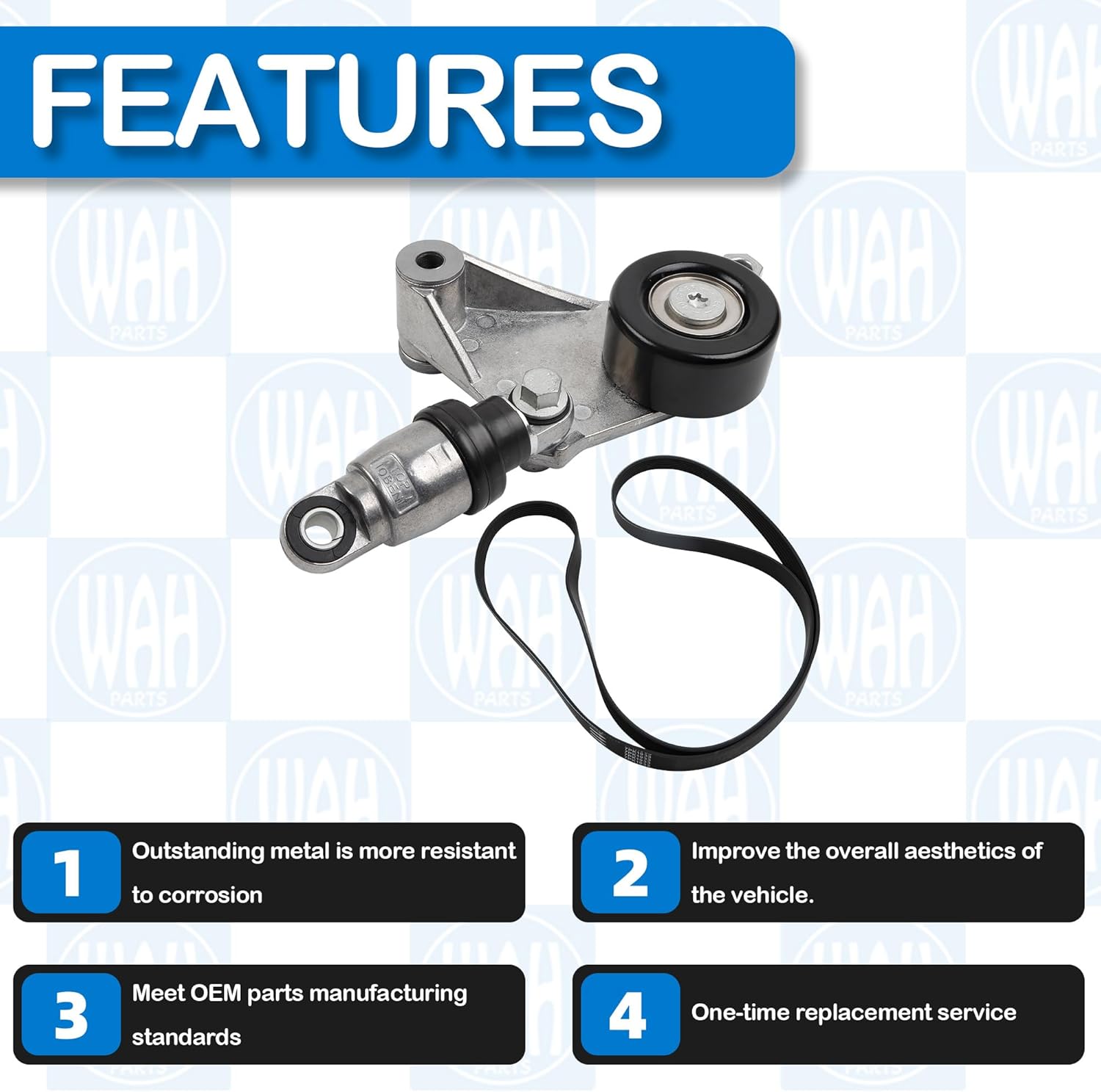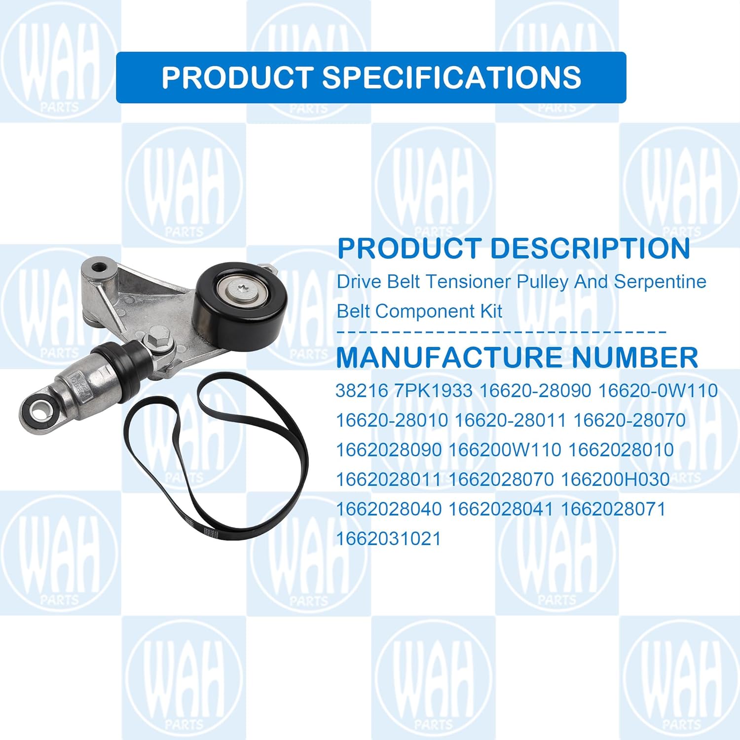 38216 Drive Belt Tensioner Pulley And 7PK1933 Serpentine Belt Component Kit Compatible With 2004-2006 Toyota Camry L4 2.4L