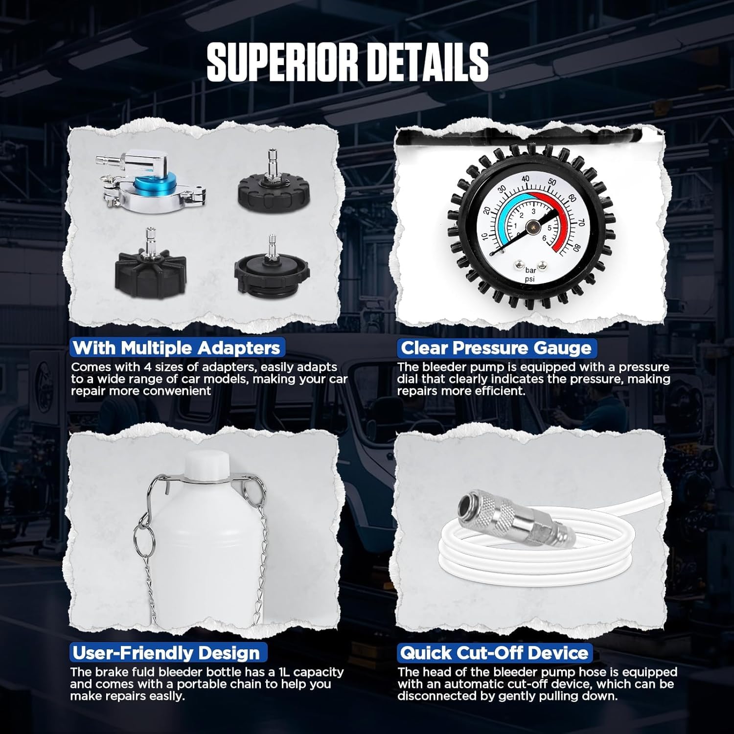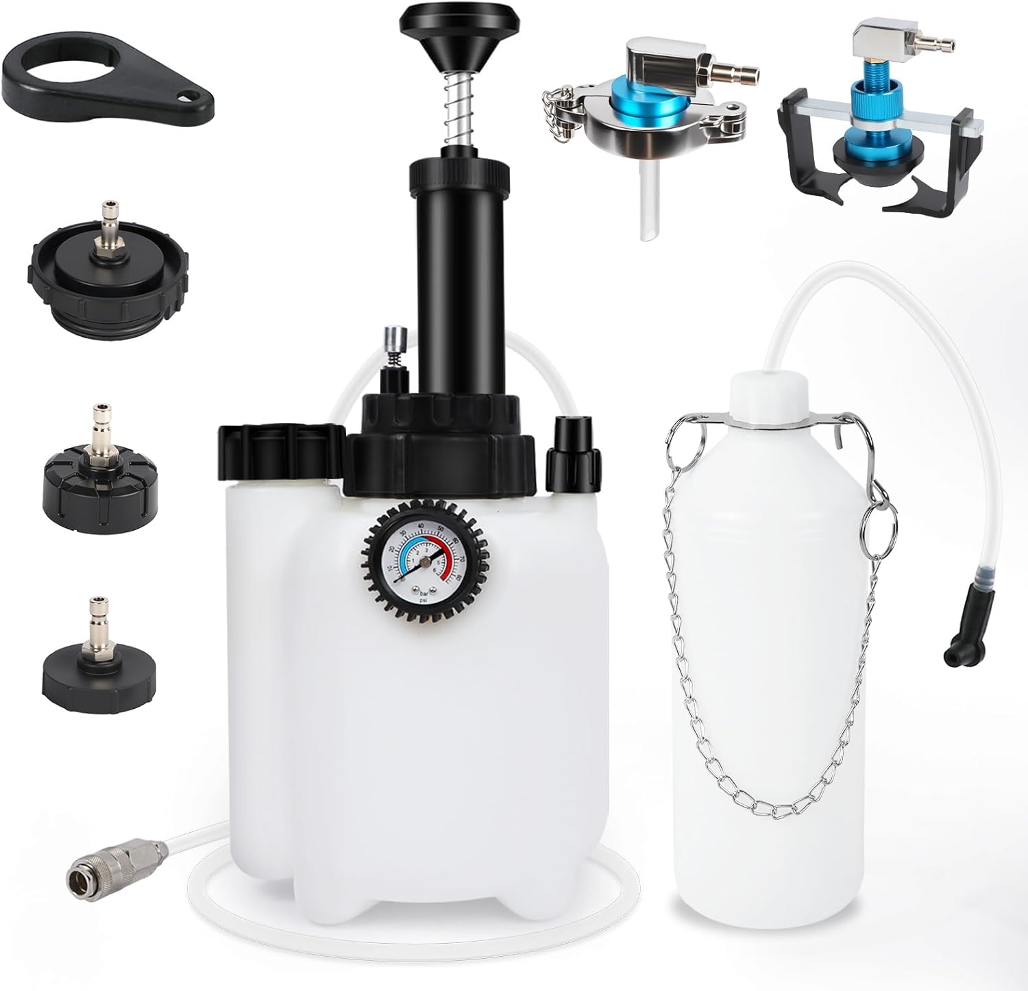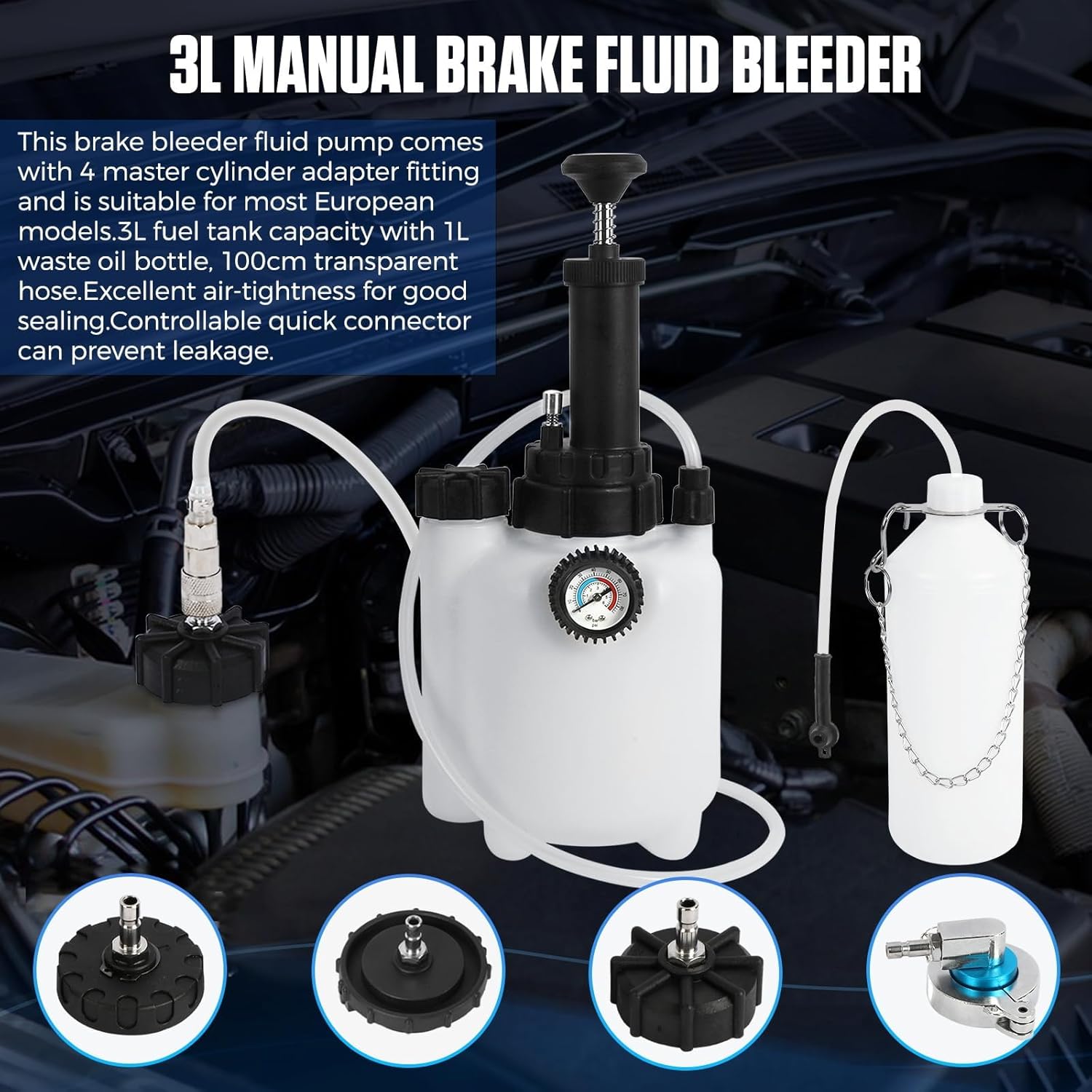 3L Manual Brake Bleeder Fluid Pump, One Person Brake Fluid Extractor with 1L Extractor Bottle&5 Master Cylinder Adapters Compatible with Toyota, Lexus, BMW,Chrysler, Dodge, Jeep, Nissan, Ford ,GM etc