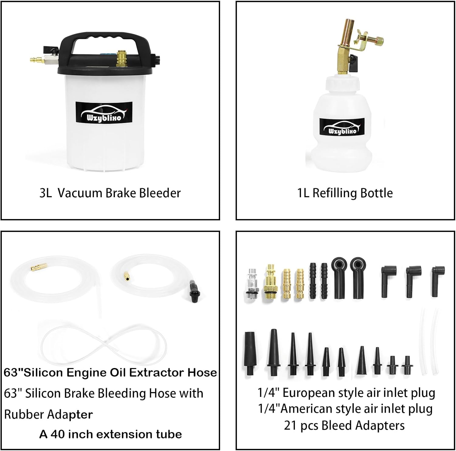 3L Vacuum Brake Bleeder Kit, One Man Pneumatic Brake Fluid and Clutch Bleeding Extractor Tool with Adapters with 1L Refilling Bottle