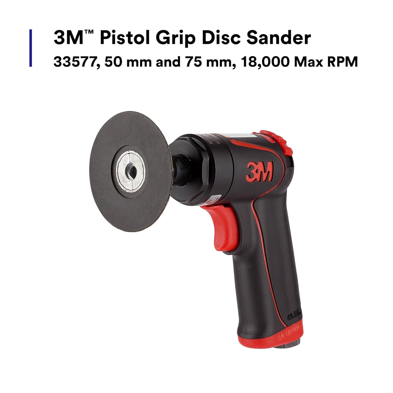 3M Pistol Grip Disc Sander, 33577, 18,000 RPM, 50mm and 75mm, 1 per box, Automotive Tool for Abrasive Disc Grinding, Weld Cleanup, Paint-Stripping