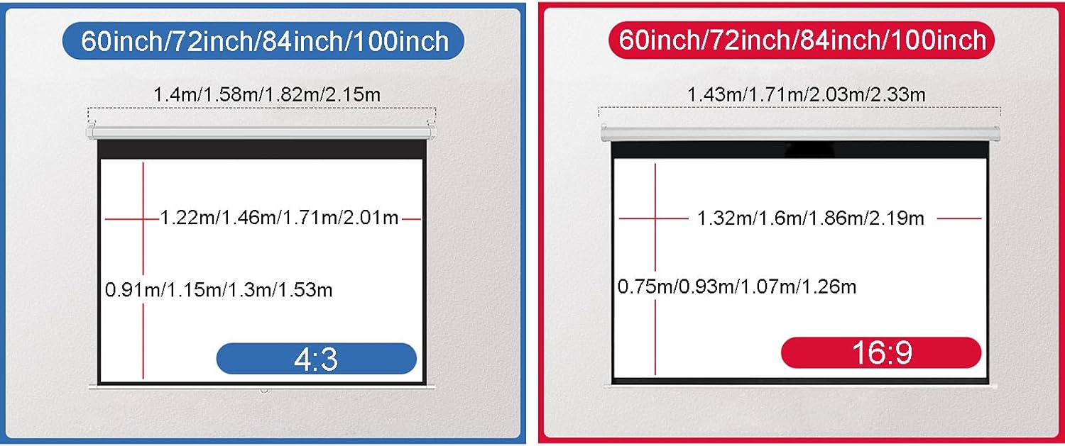 4:3/16:9 HD Manual Pull-Down Retractable Projection Screen with Auto-Locking, Wall-Mounted Projector Screen Portable Projection Screen for Home Theater (60inch 16:9