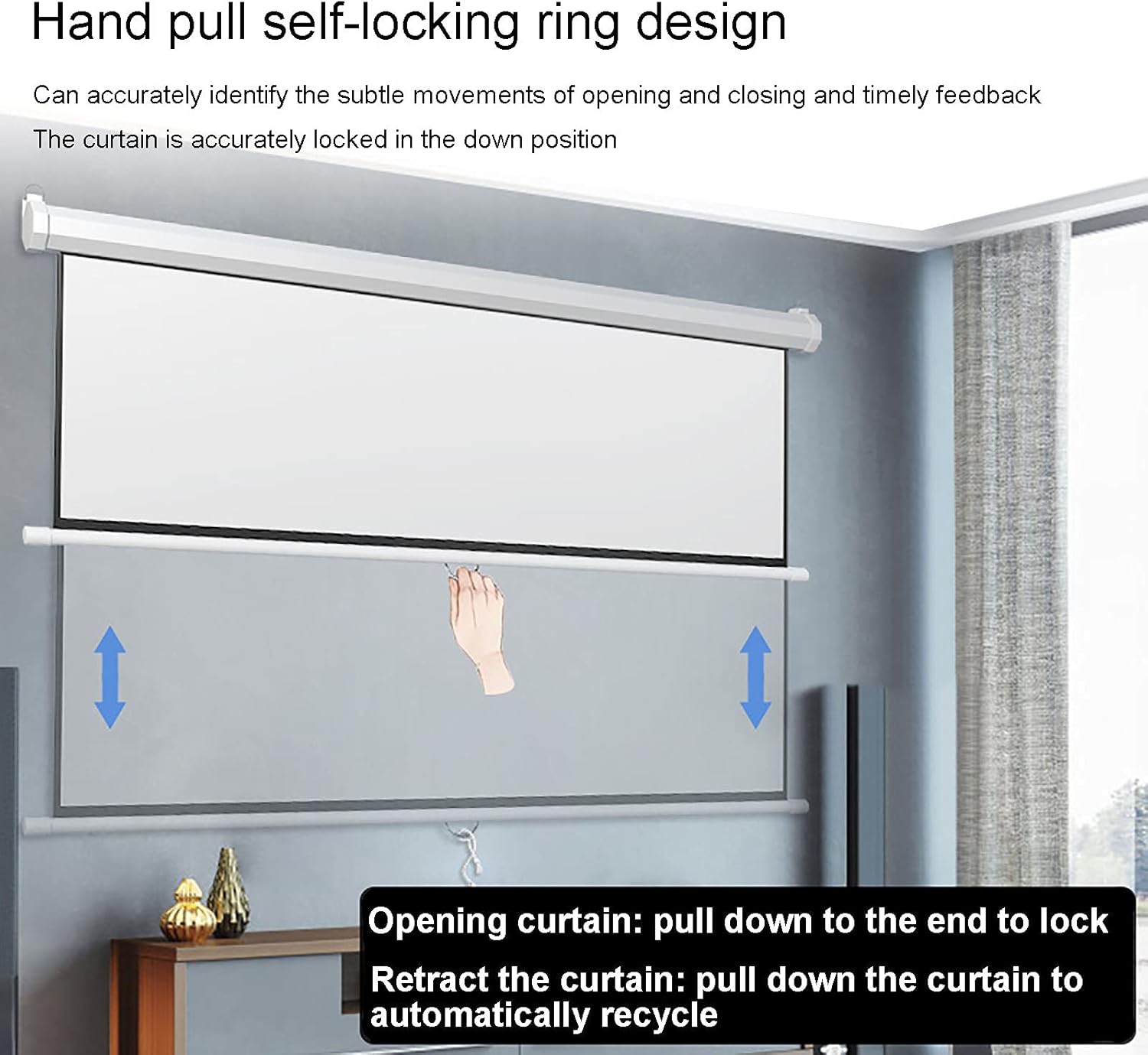 4:3/16:9 HD Retractable Auto-Locking Design Portable Foldable Projection Screen, Manual Pull Down Projector Screens for Home Theater Office Classroom Presentation Educati(100inch 16:9
