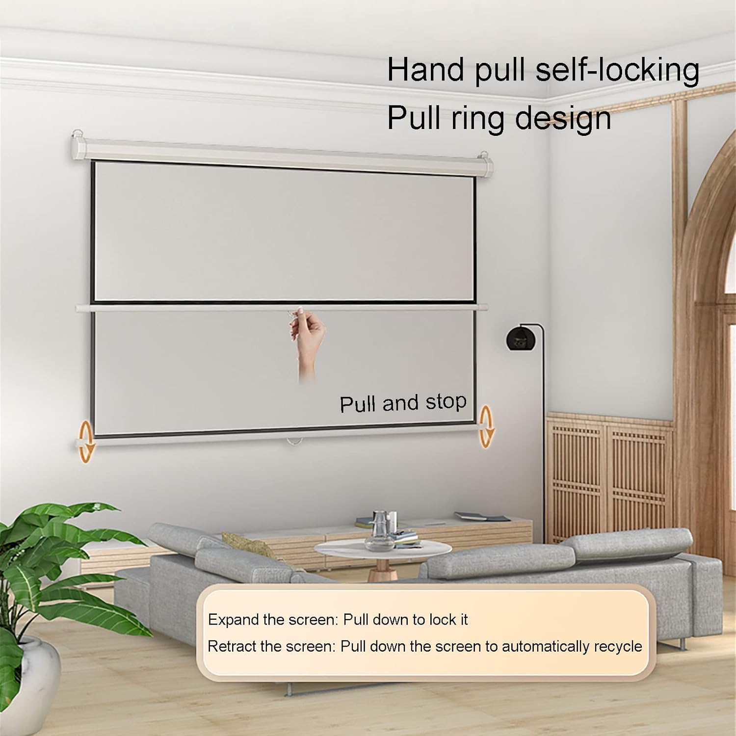 4:3/16:9 HD Retractable Portable Auto-Locking Projection Movie Screen, Indoor Outdoor Manual Pull Down Projector Screen for Home Cinema Gaming Hotel Wedding,60inch 16:9