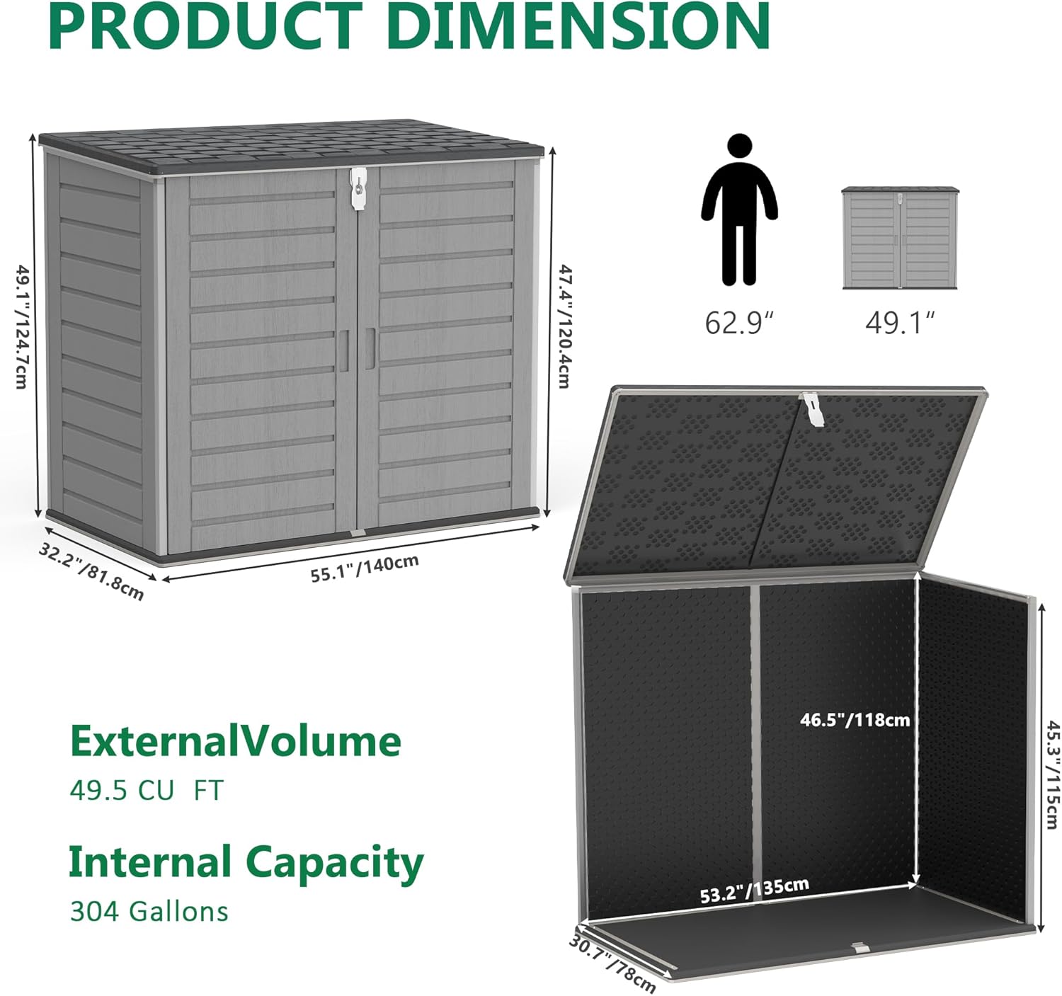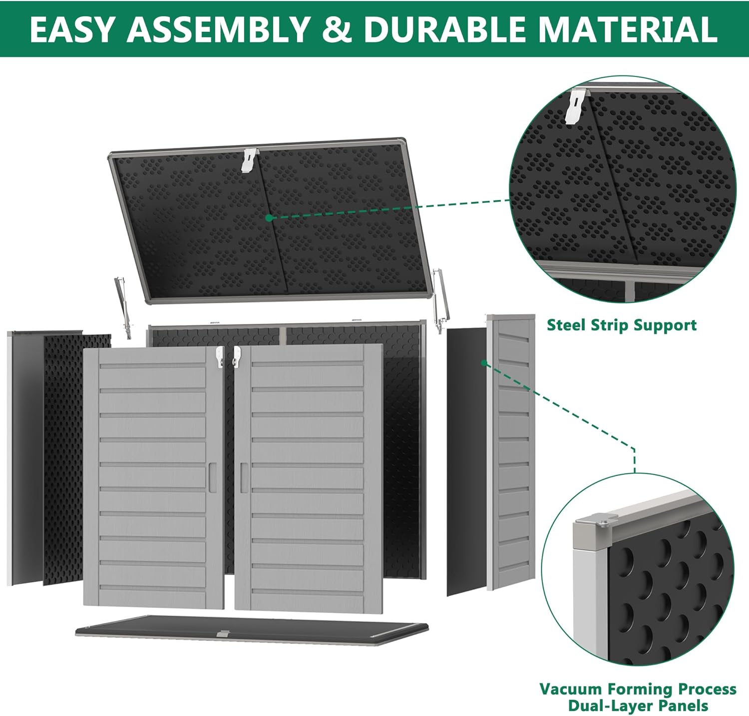 4.6 Ft. X 4.1 Ft Outdoor Horizontal Storage Shed, Resin Storage Shed with Double Lockable Doors, Ideal for Garbage Can Storage and Garden Tools, Strong Water Resistance, Gray