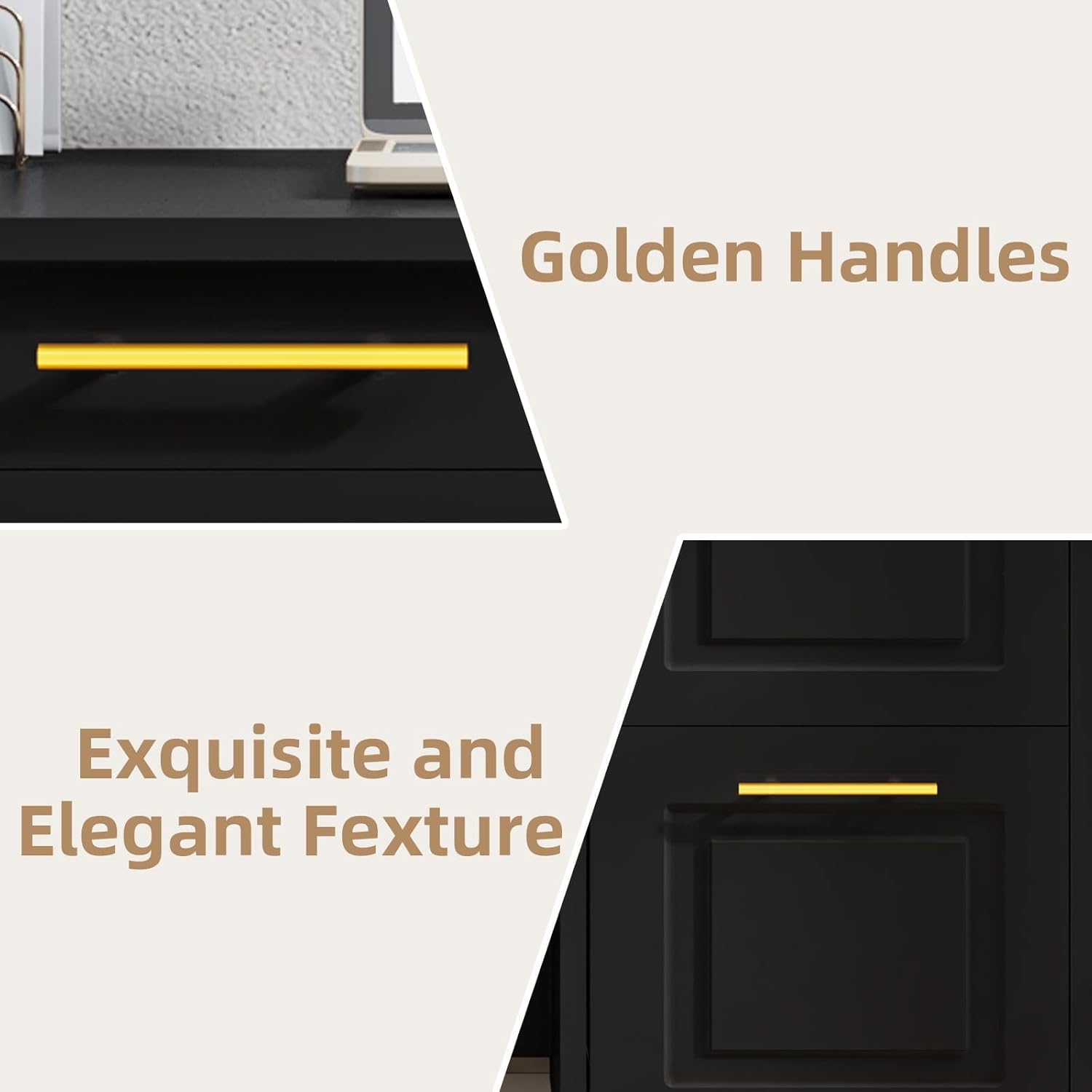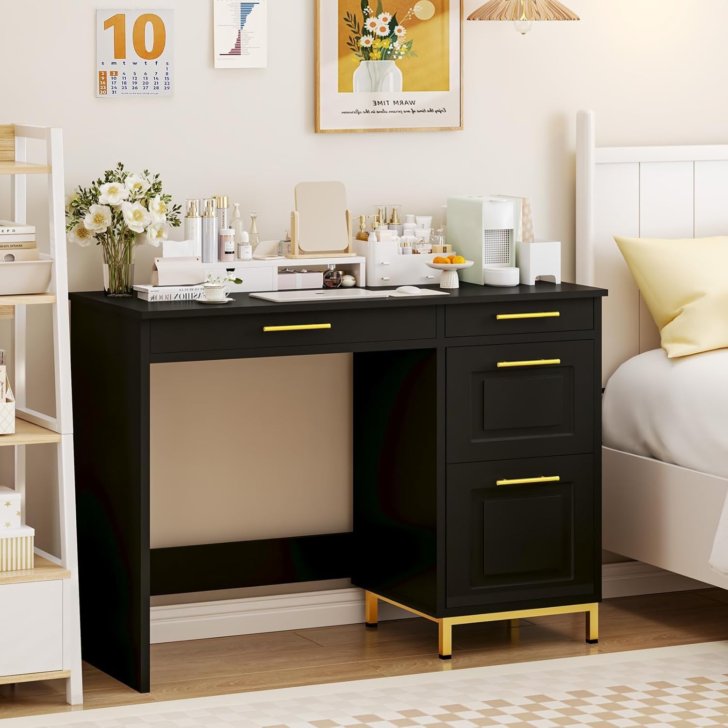 4 EVER WINNER Computer Desk with Drawers, 43 Inch Small Desk with Storage Shelves, Home Office Desk with Drawers for Small Space, Black