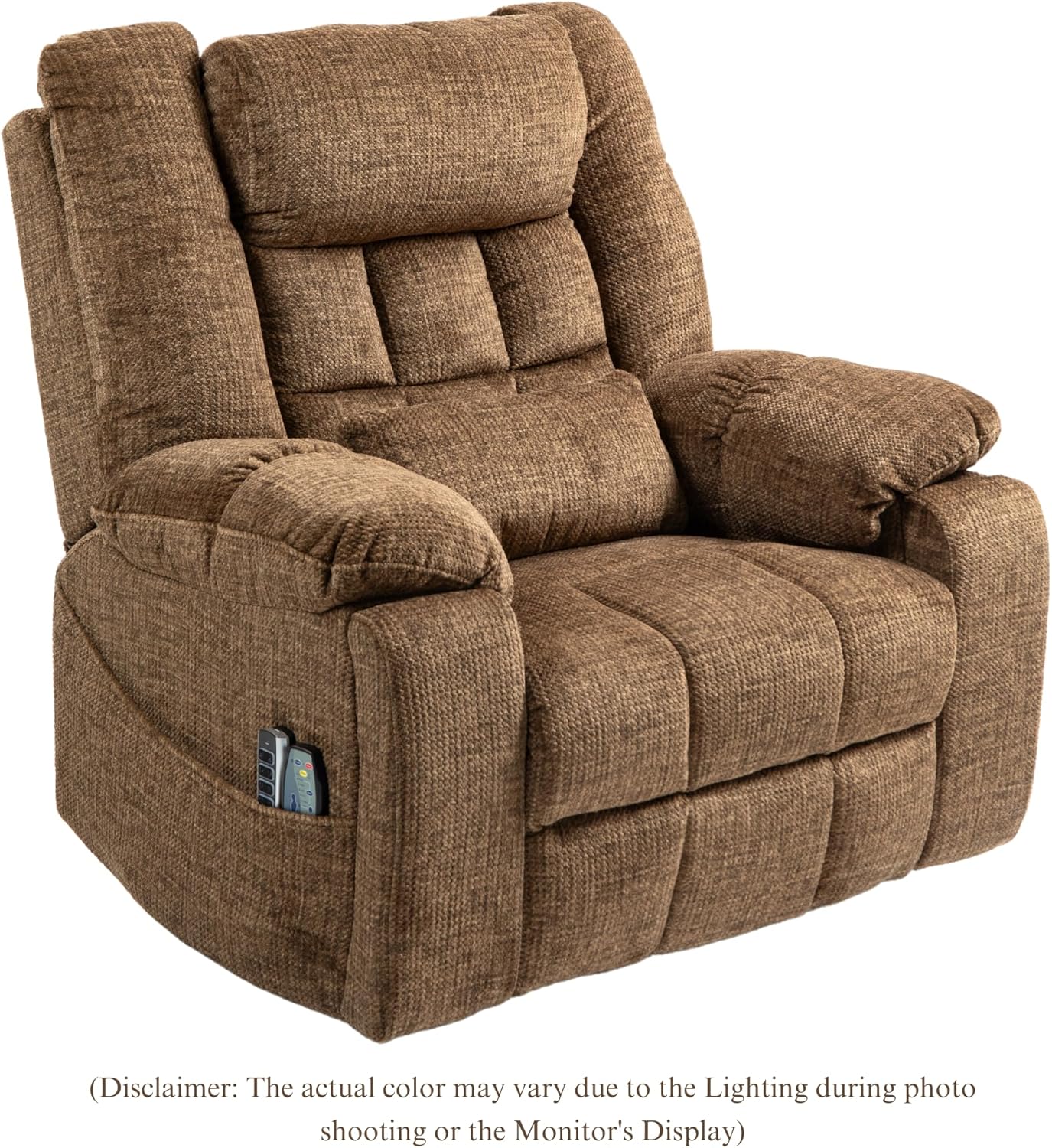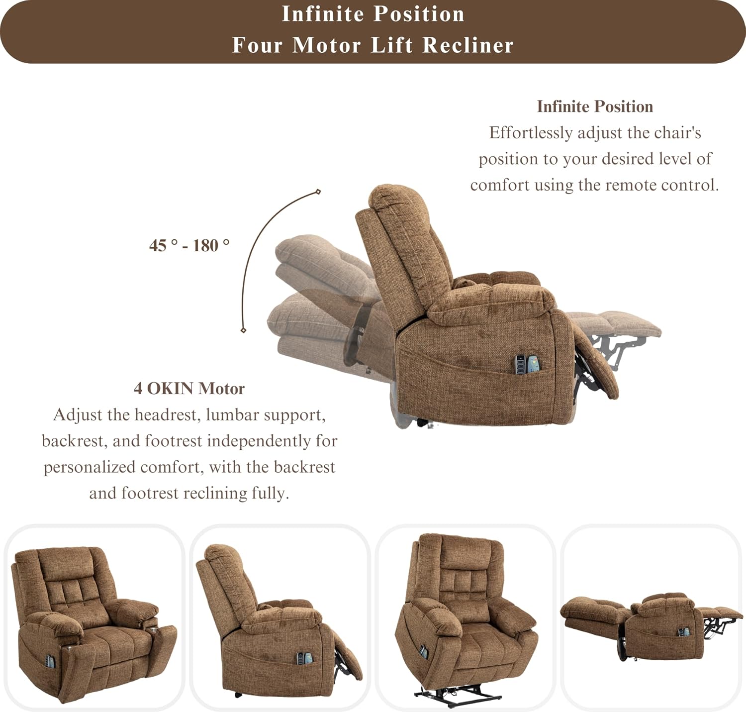 4-Motor Power Lift Chair with Heat & Massage - Power Adjustable Headrest, Backrest, Lumbar & Footrest - 27-inch Wide Seat Lay Flat Recliner, 8-Point Massage (Lumbar Heating)
