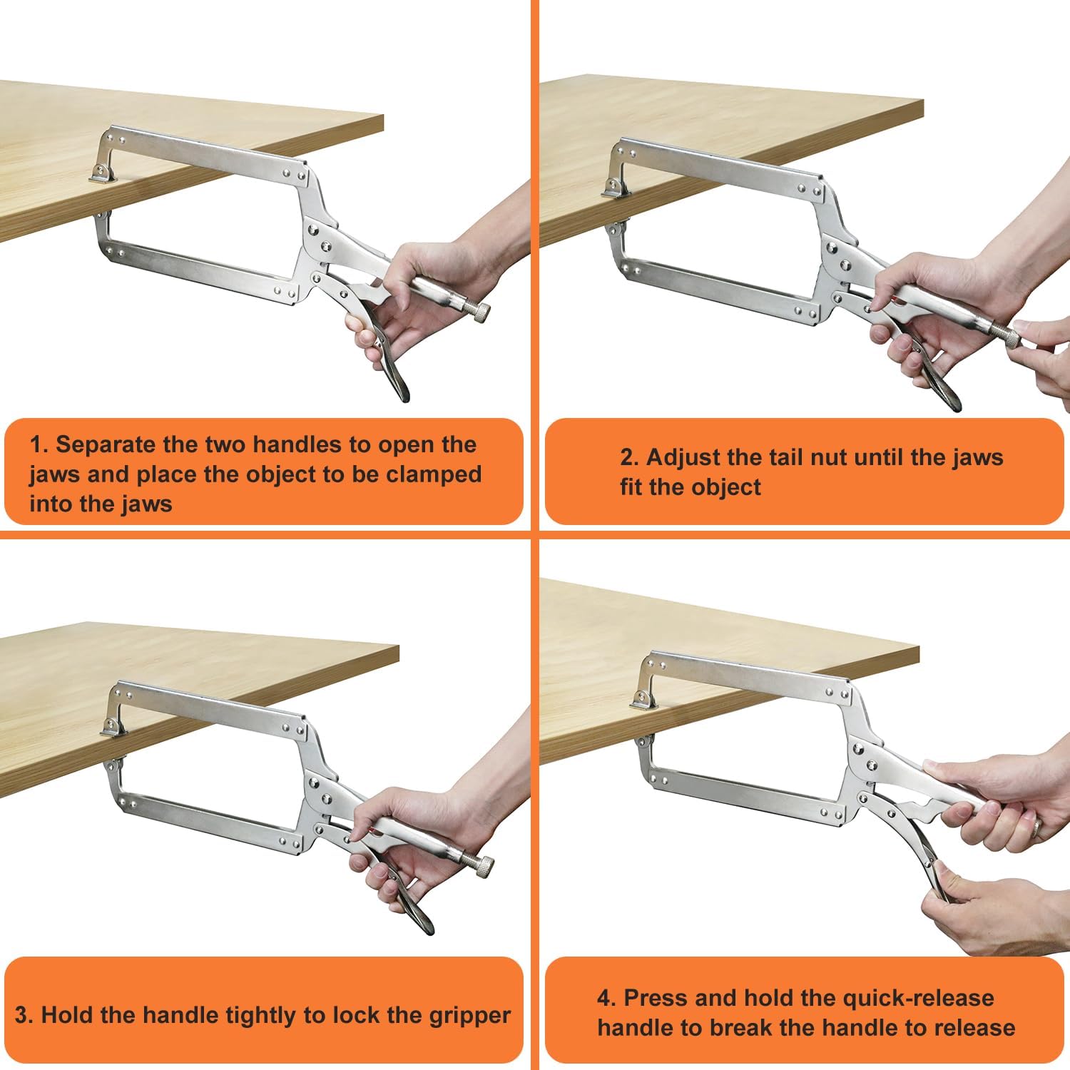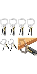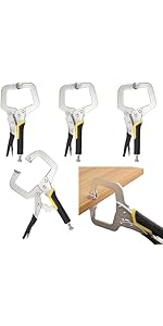 4 Pack 18 Inch C Clamp Locking Pliers,Locking C Clamp, Adjustable Nickel Plated C Pliers For Wood Working, Welding, Electrician Maintenance and more, by GENHAKON