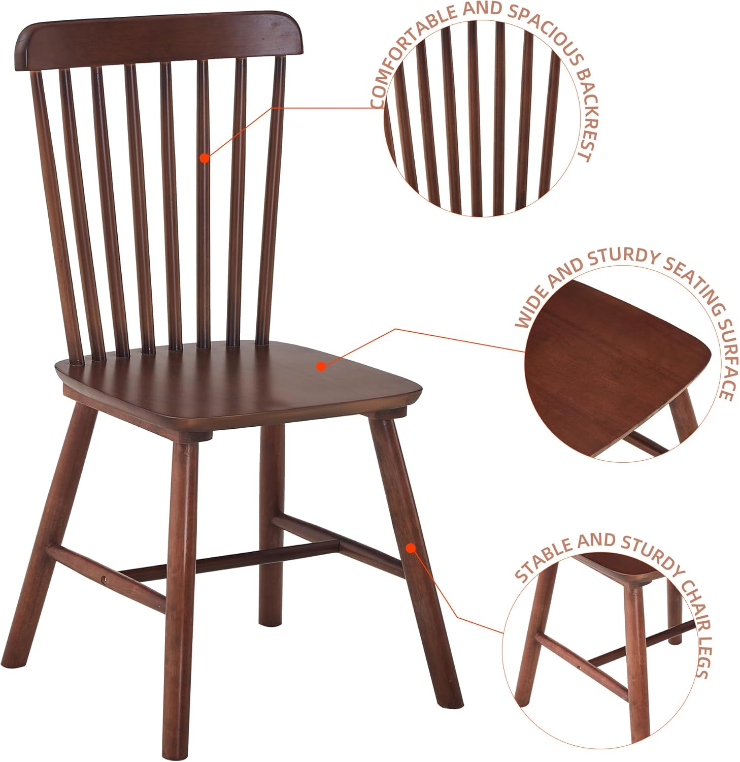 4 Pieces of Dining Chair, Rubber Wood Material, Solid Wood Dining Table Chair, Living Room Chair, Simple and Natural (Walnut)