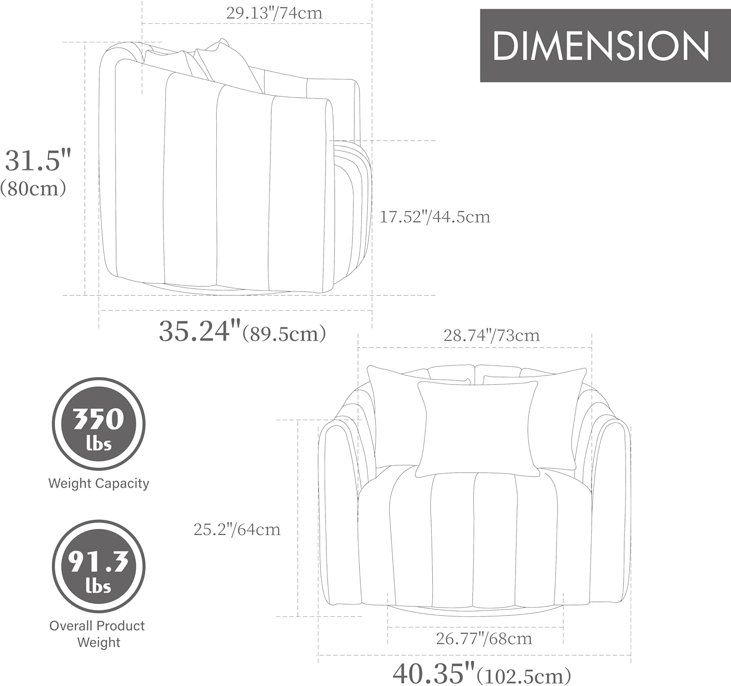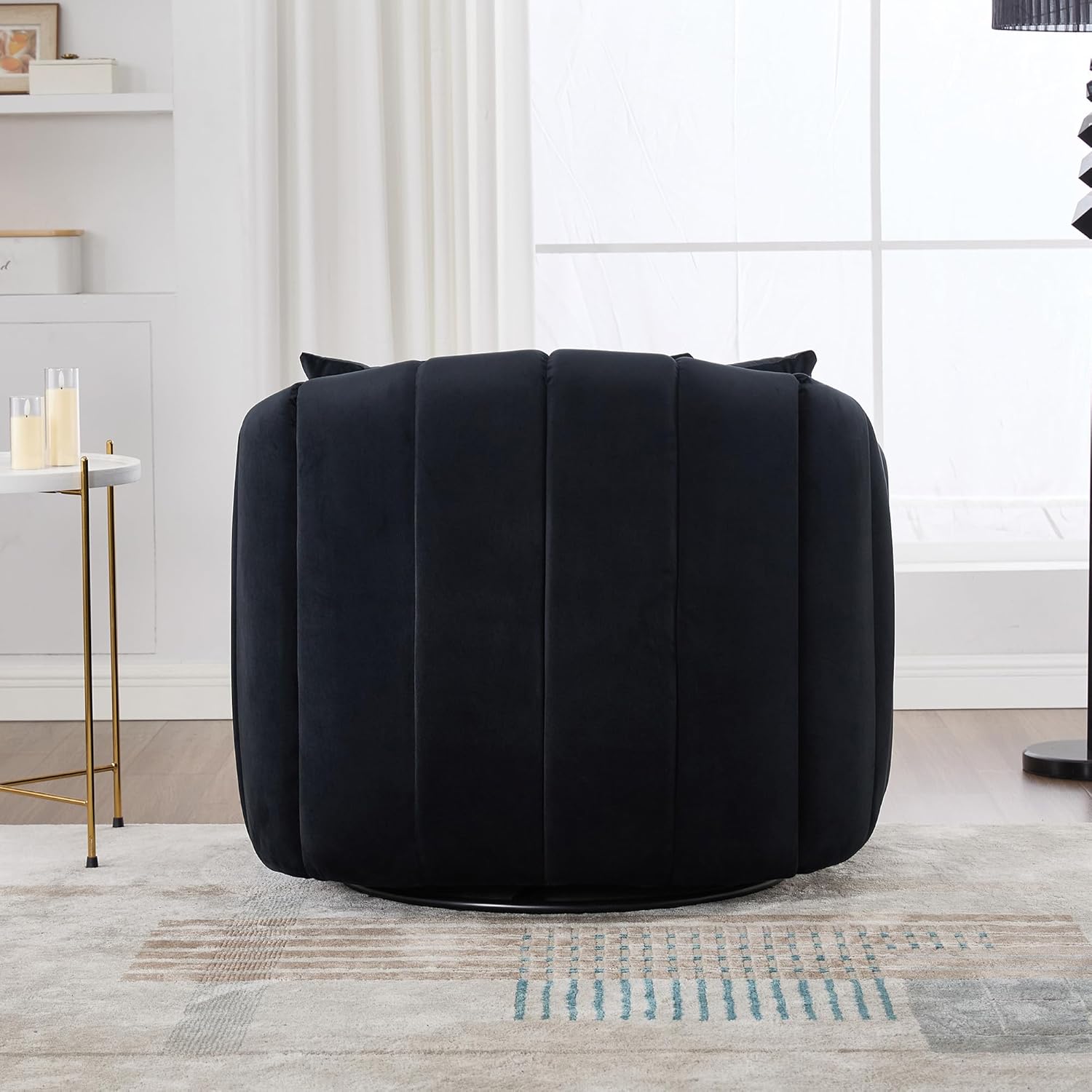 40" W Upholstered Oversized 360° Swivel Accent Barrel Chair and Half Cozy Sofa with Removable Pillows, Velvet Club Armchair for Living Room Bedroom Office Lounge, Black