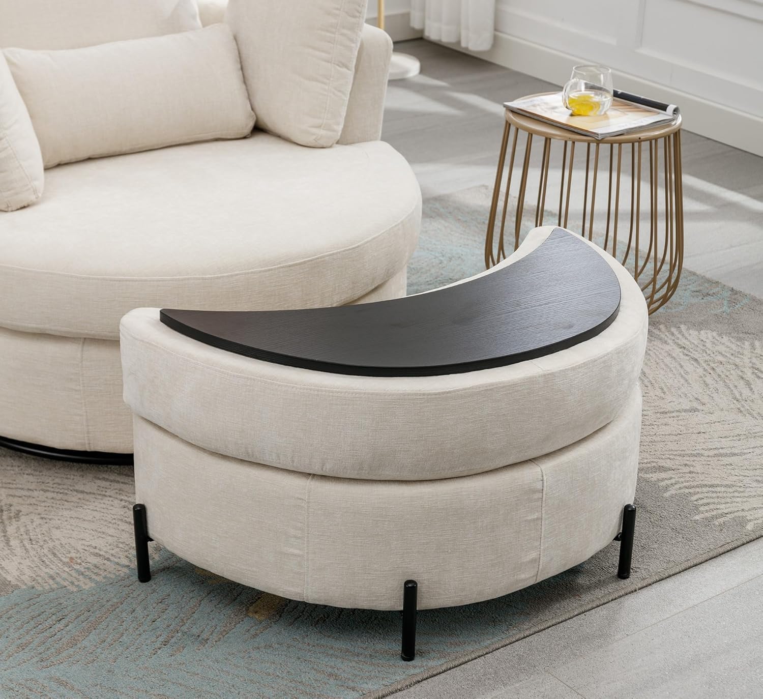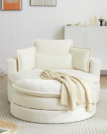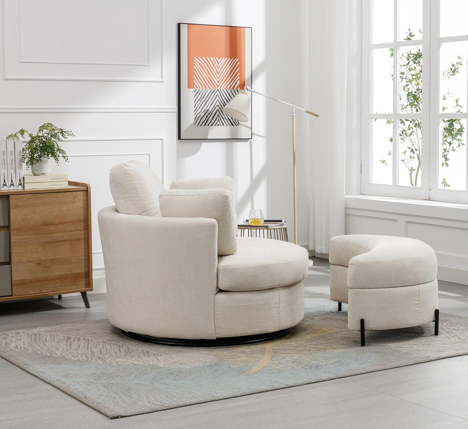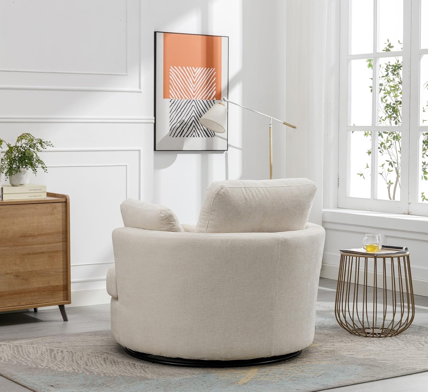 42" W Swivel Accent Barrel Chair Set Lounge Club Big Round Sofa with 4 Pillows for Living Room, Bedroom, Study, Hotel (Beige + Chenille)