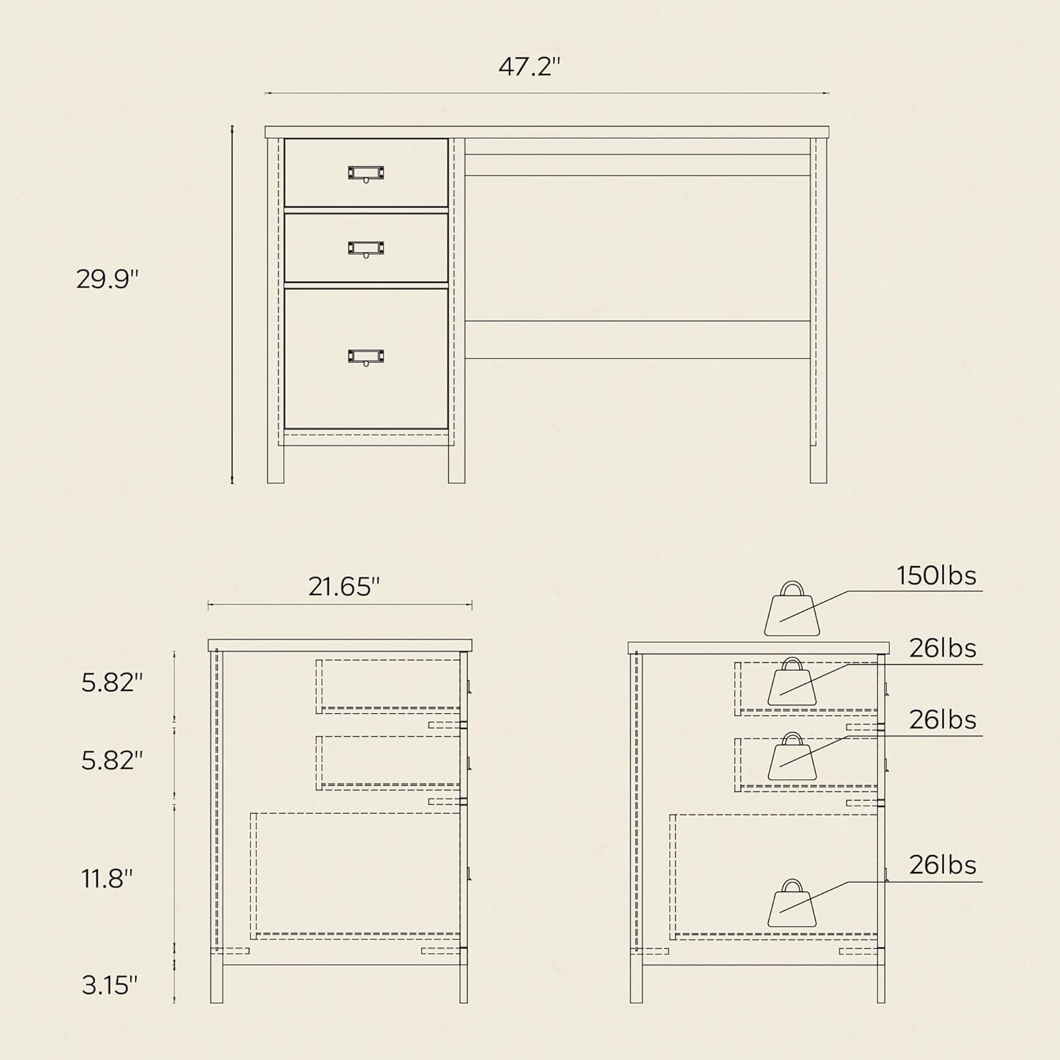 47" Executive Desk with File Drawer, Modern Wood Home Office Desk with Storage Drawer Computer Writing Desk for Study Office