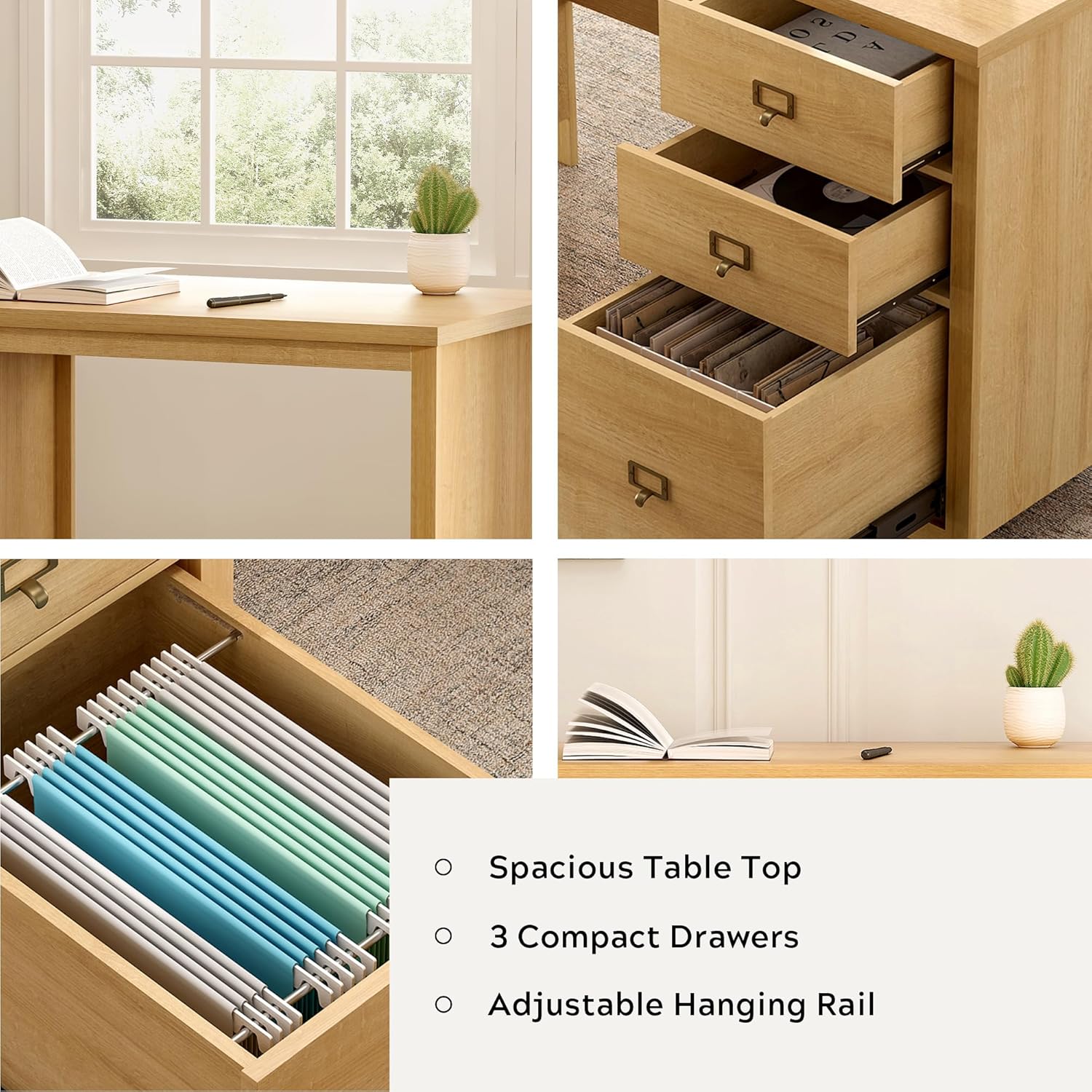 47" Executive Desk with File Drawer, Farmhouse Wood Home Office Desk with Storage Drawer Computer Writing Desk for Study Office, Natural Oak