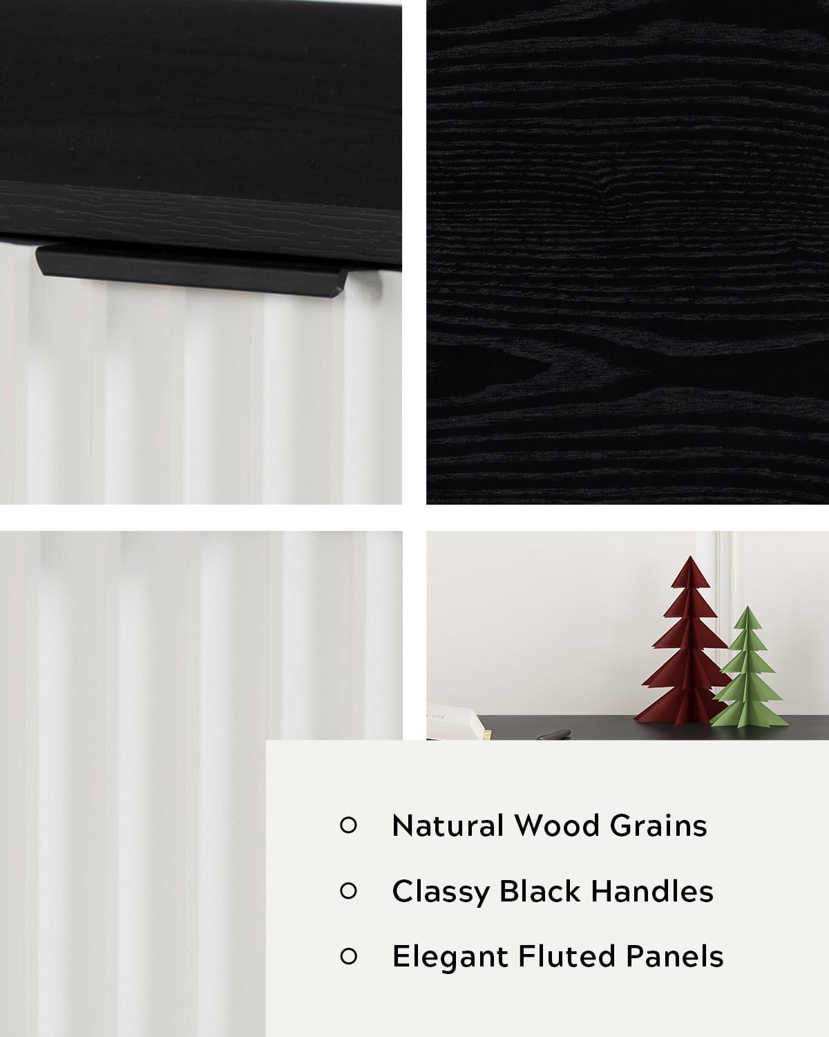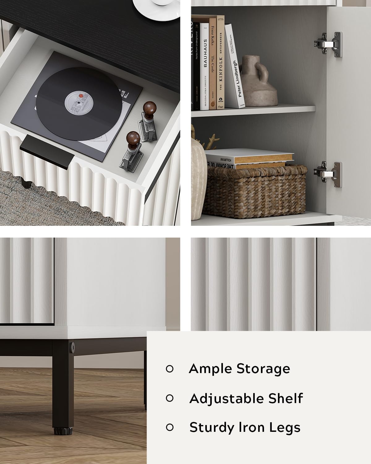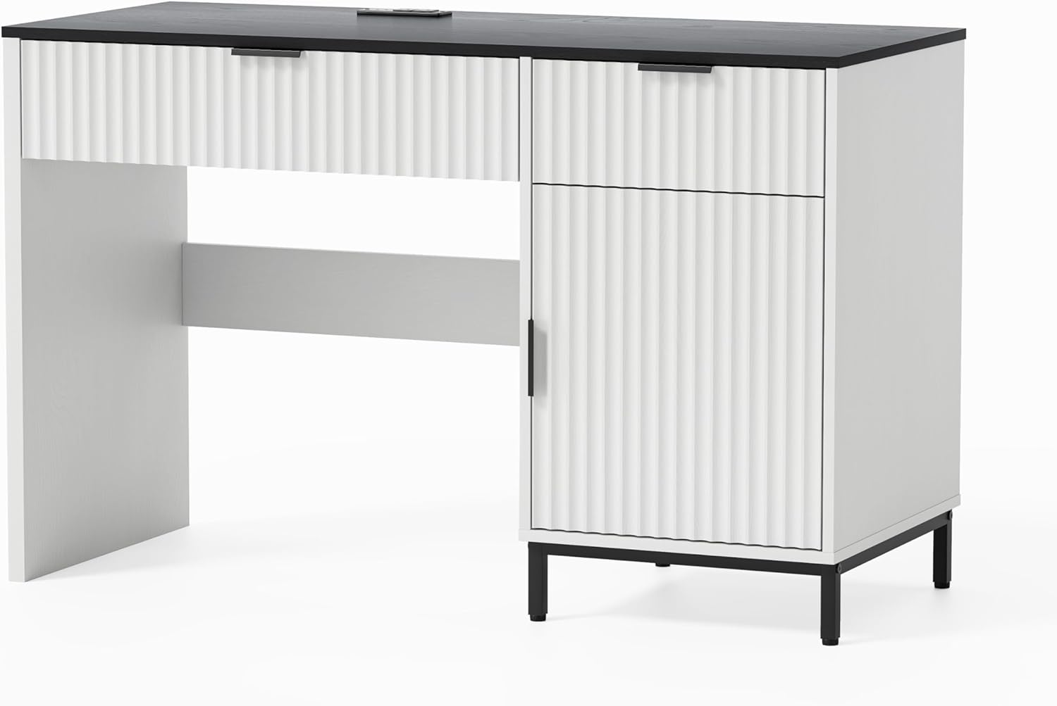 47" Home Office Desk with Fluted Drawers, Wood Exectuive Desk with Storage Cabinet, Charging Station, Metal Legs Modern Farmhouse Computer Desk for Work, Study White