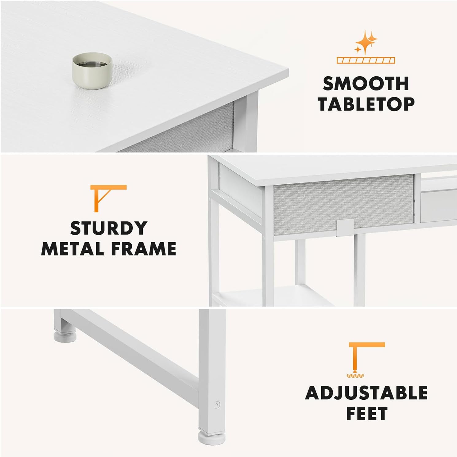 Introducing our UOCFYK Study Table, a versatile work table that redefines functionality and style for your office desk needs. This is not just another piece of furniture; it's an inviting space that seamlessly accommodates your daily tasks, whether you're setting up for an intense gaming session, diving into creative writing, or tackling academic challenges. Crafted with meticulous attention to detail, this innovative pc table blends minimalism with practicality in a clean white finish, making it a stylish addition to any room. With the UOCFYK writing desk, elevate your workspace into a hub of productivity and relaxation!