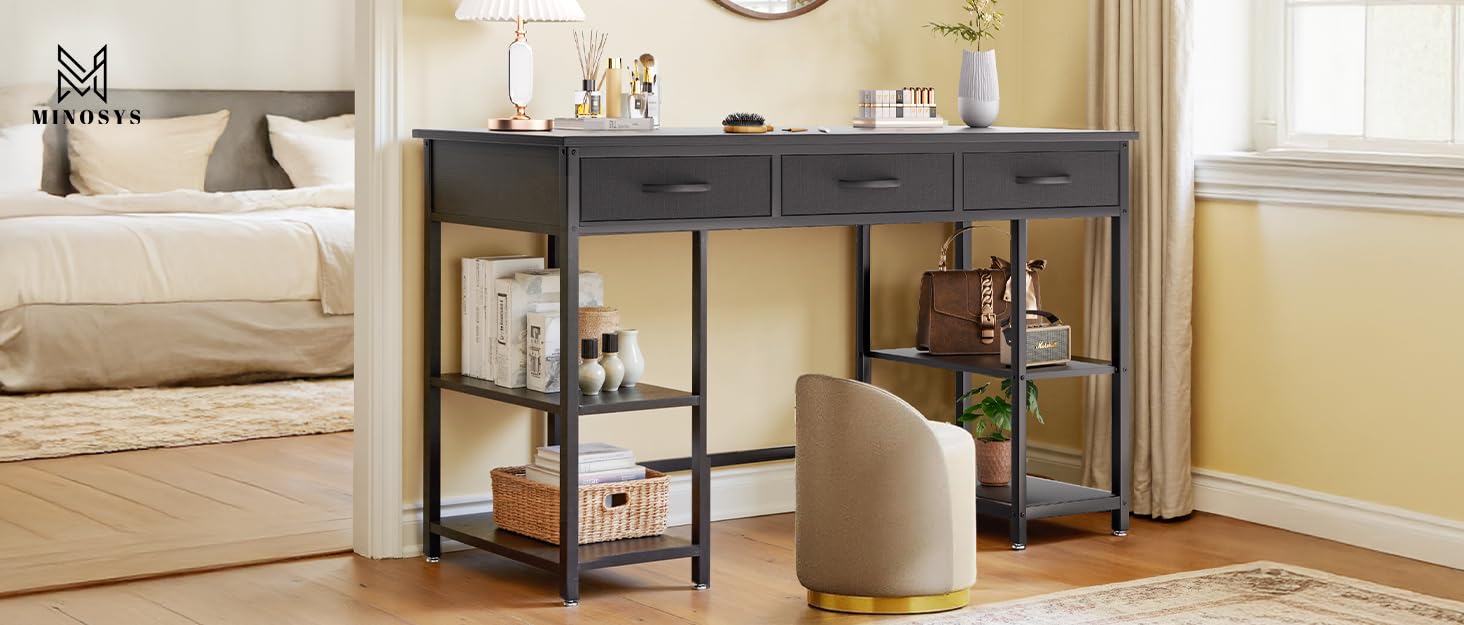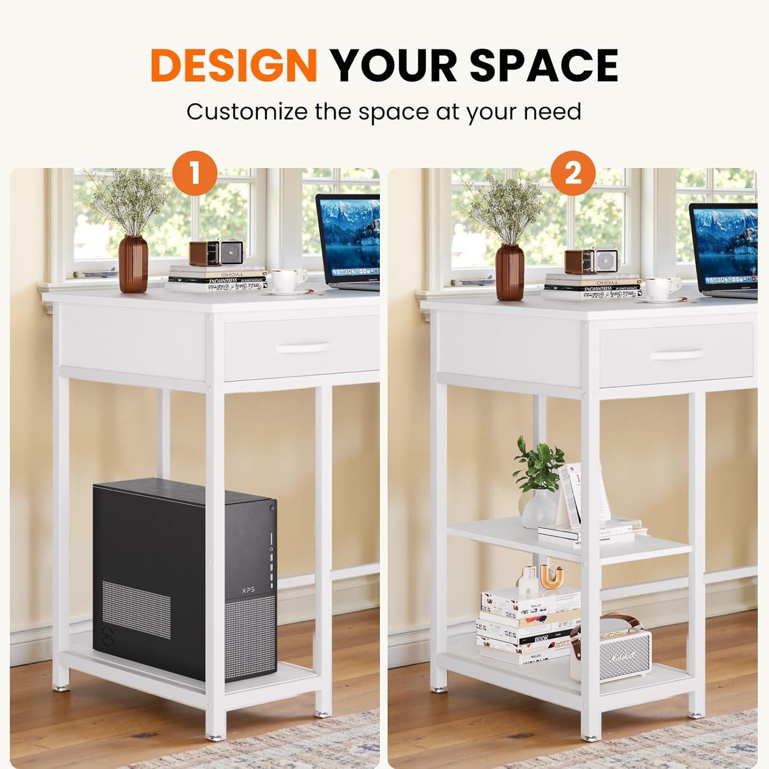 47-inch Computer Desk with 3 Drawers, Small Home Office Desk with Storage Shelves and Sturdy Metal Frame, White