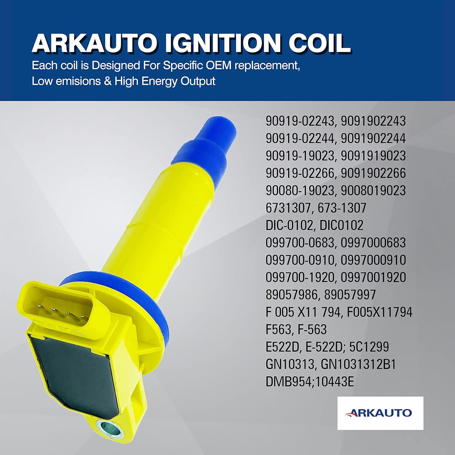 4PCS ARKAUTO HIGH PERFORMANCE IGNITION COILS 9091902244 9091902243 9091902266 9008019023 UF333 FOR TOYOTA Corolla Camry Highlander Matrix RAV4 Solara Scion tC xB Lexus ES240 HS250H 2.0 2.4 L4 1AZ 2AZ