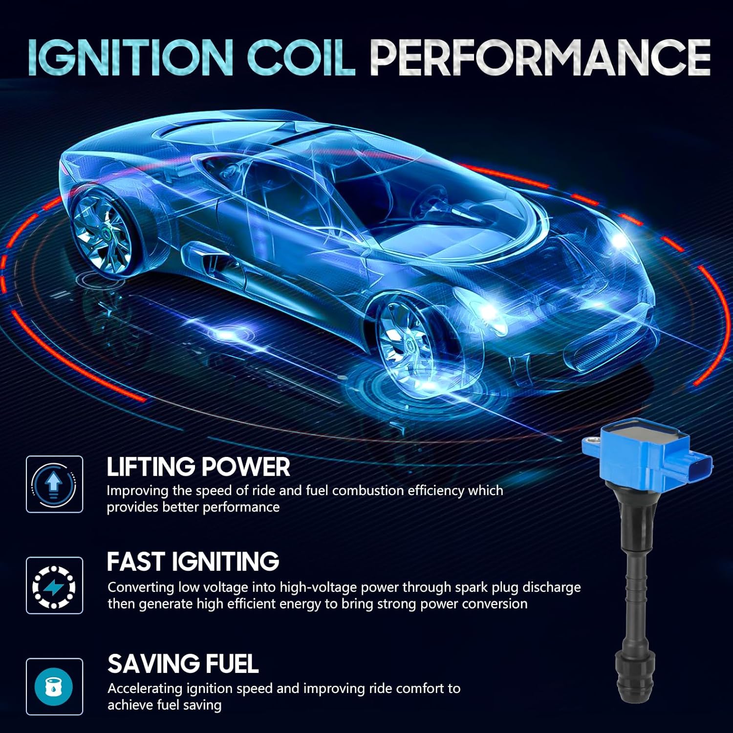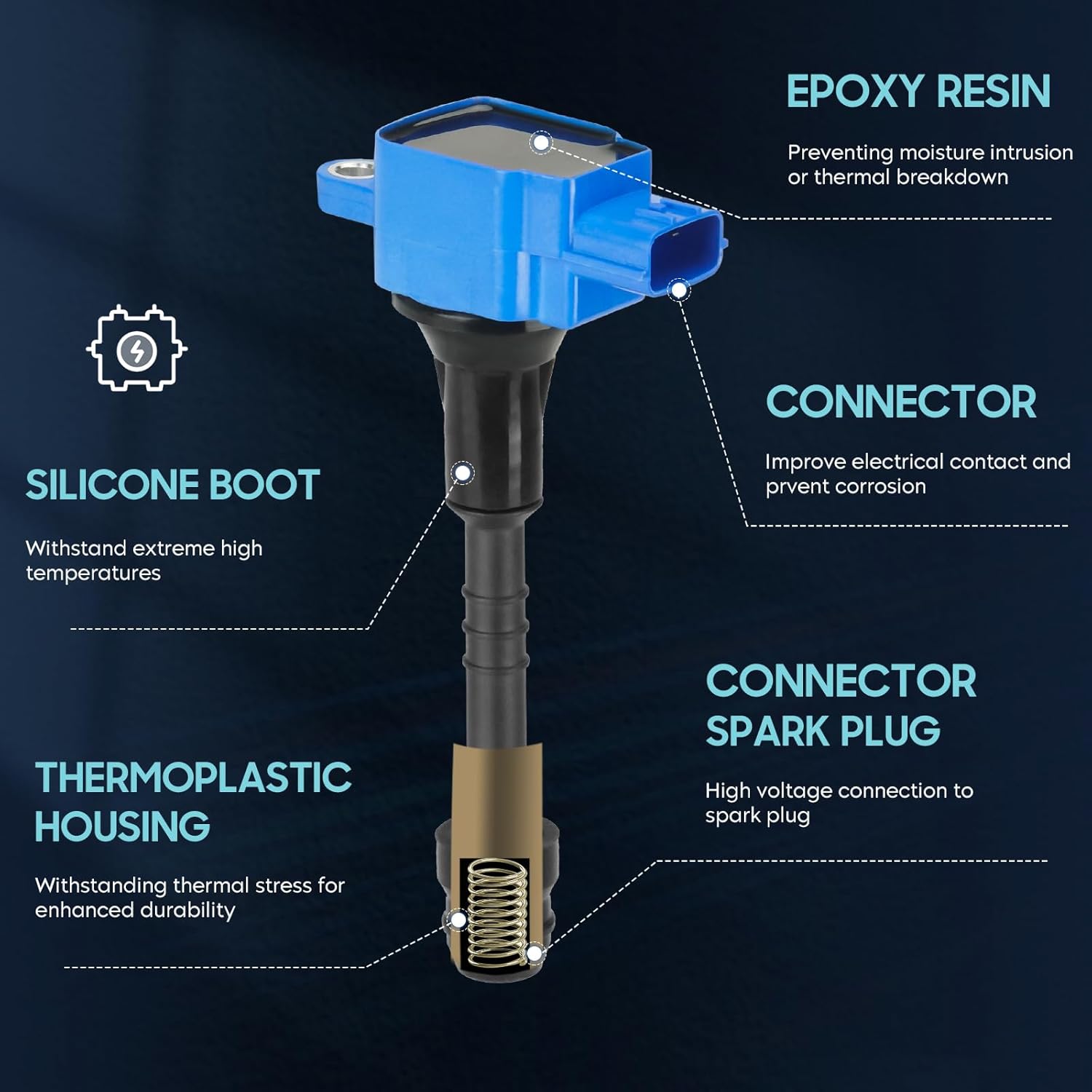 4PCS Ignition Coil Pack Compatible with Nissan 2001 2002 2003 2004 2005 Almera 2002-2006 Sentra L4 1.8L, Replaces UF351 22448-6N015 22448-6N011 C1397 B335, Blue