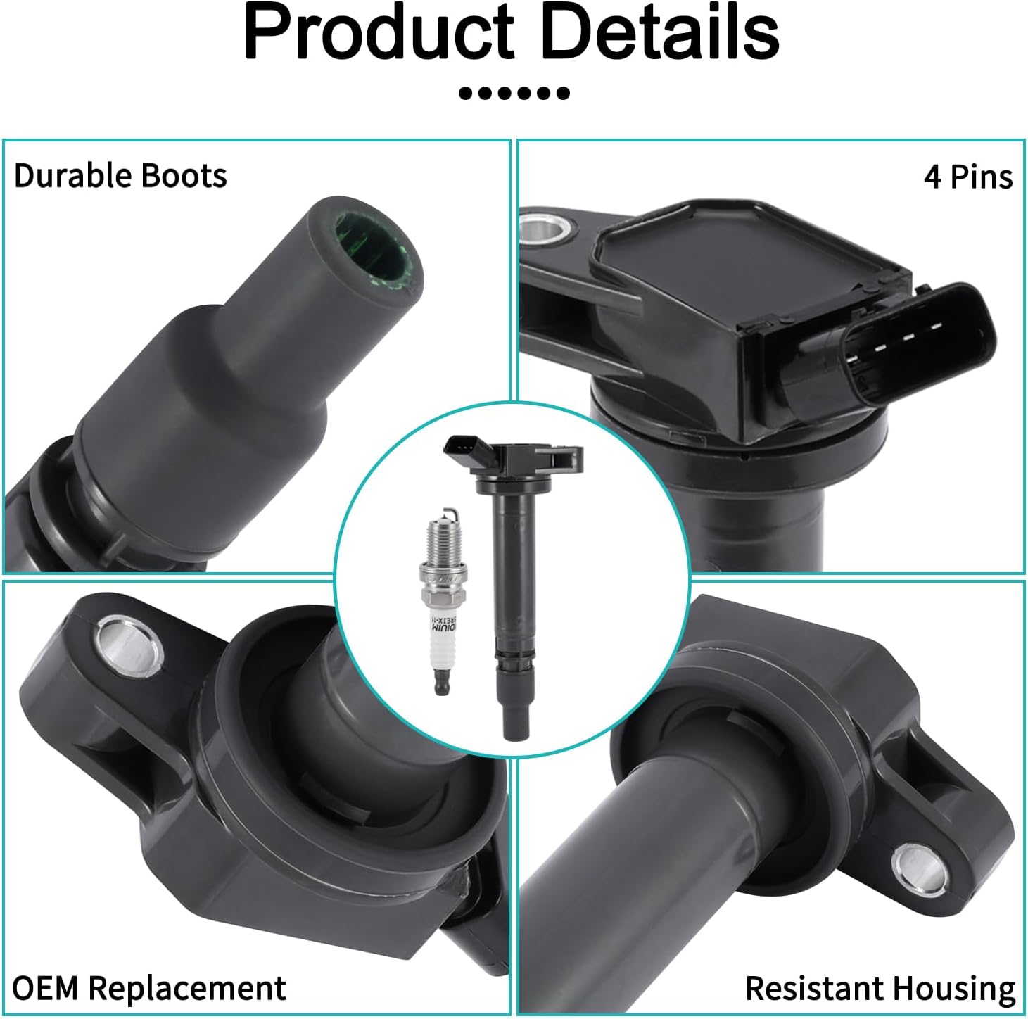 4PCS UF507 Ignition Coil Pack & 4503 Spark Plugs For Toyota Avalon Camry RAV4 Highlander Sienna Tundra Land Cruiser Land Cruiser,Scion tc,Lexus ES300H IS250 GX460 LS460 LS600H LX570 GS300