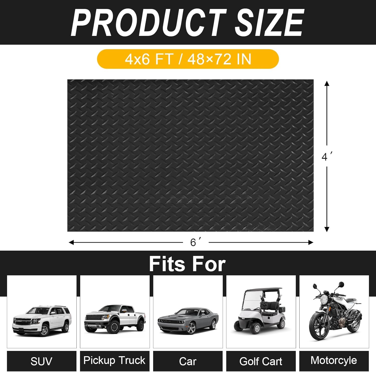 4x6 FT Garage Floor Mat, 2.8mm Thickened Flooring Roll Diamond Plate PVC Rubber Trailer Mat, Non-Slip Floor Mat for Garage, Warehouse, Gyms, Boats, Pickup Truck, Black