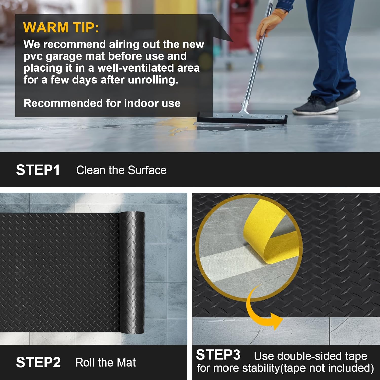 4x8FT Garage Floor Mat, 2.8mm Thickened Flooring Roll for Under Car, Golf Cart Parking Mat, Diamond Plate PVC Rubber Motorcycle Mat, Non-Slip Floor Protector for Garage Warehouse Trailer, Black