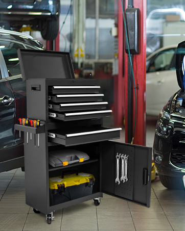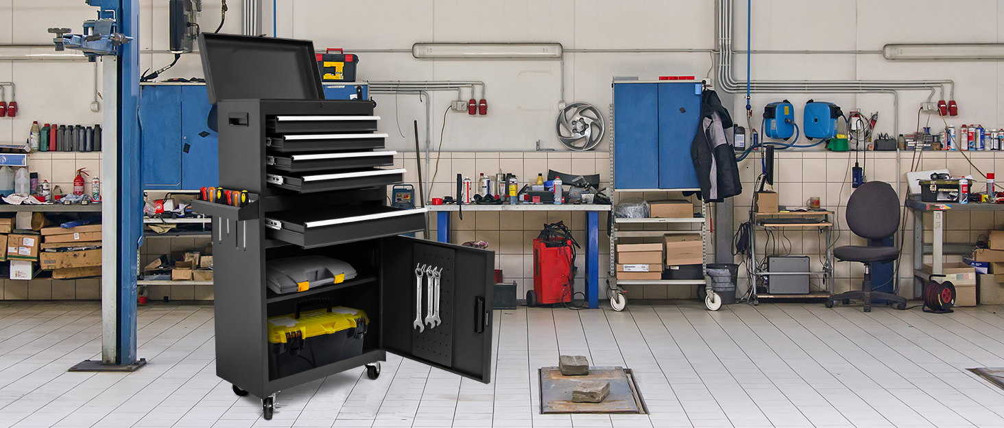 5-Drawer Rolling Tool Chest, High Capacity, Adjustable Shelf, Lockable Drawers, Detachable 2 in 1 Mechanic Tool Box Storage Cabinet with Wheels for Garage Workshop Warehouse Repair Shop