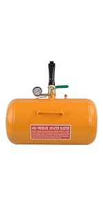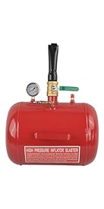 This is 5 gallon air bead seater which is made of solid steel. There is a on/off valve which is designated for controlling the filling of tank. There is also a air gauge exposed which tells you the air volume accurately. It is essential for your tire beading. It is suitable for heavy duty vehicle such as truck, ATV, tractor and soon.