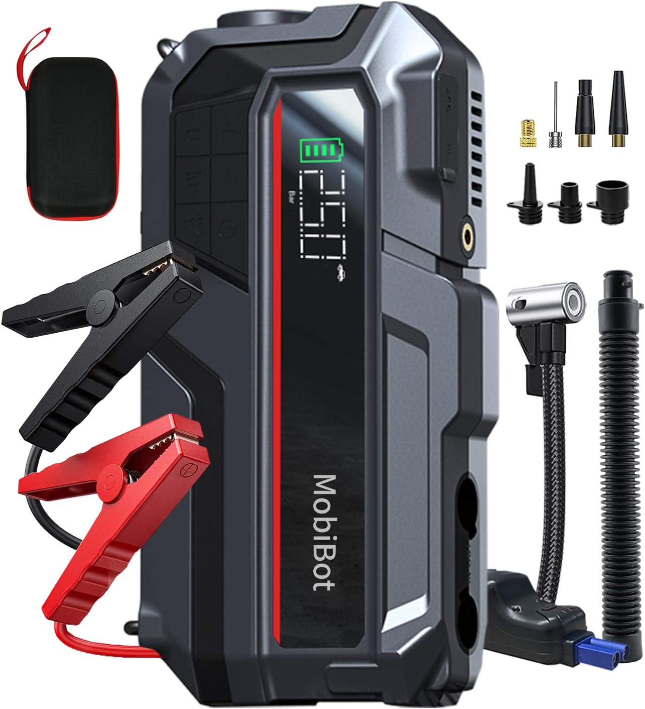 5-in-1 Jump Starter with Air Compressor, Portable Car Battery Charger 2000A Jumper Box Booster Pack up to 8.0L Gas 6.0L Diesel,150 PSI Tire Inflator for car,Quick Fill Air Pump for Inflatables