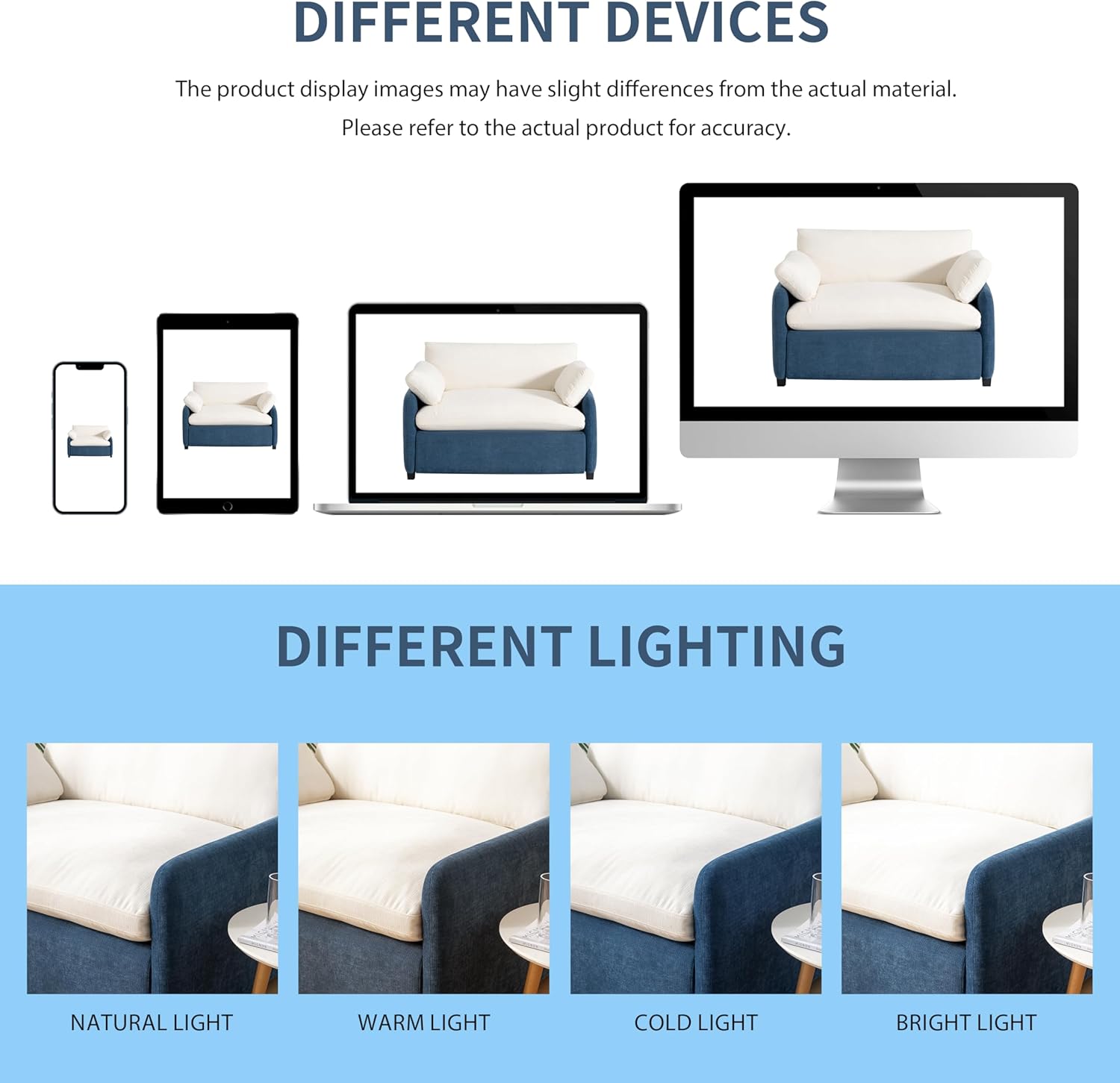 50*43" Oversized Chenille Single Sofa Chair, Wide and Deep Seat Accent Chair, Modern Upholstered Comfy Armchair, Color Blocking Couch Lounge with Pillows for Living Room,Apartment,Bedroom, Blue+Cream