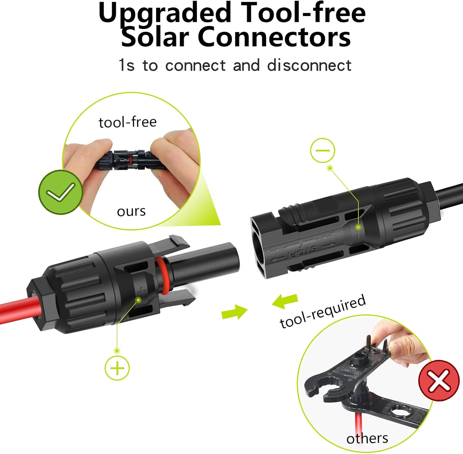 50Ft 10AWG Solar Cable Extension with Protection Cover, Solar Wire with Tool-Free Solar Connectors, IP68 Waterproof PV Cable, Solar Panel Extension Cable 10Gauge for Home Boat RV Solar Panels(50ft)