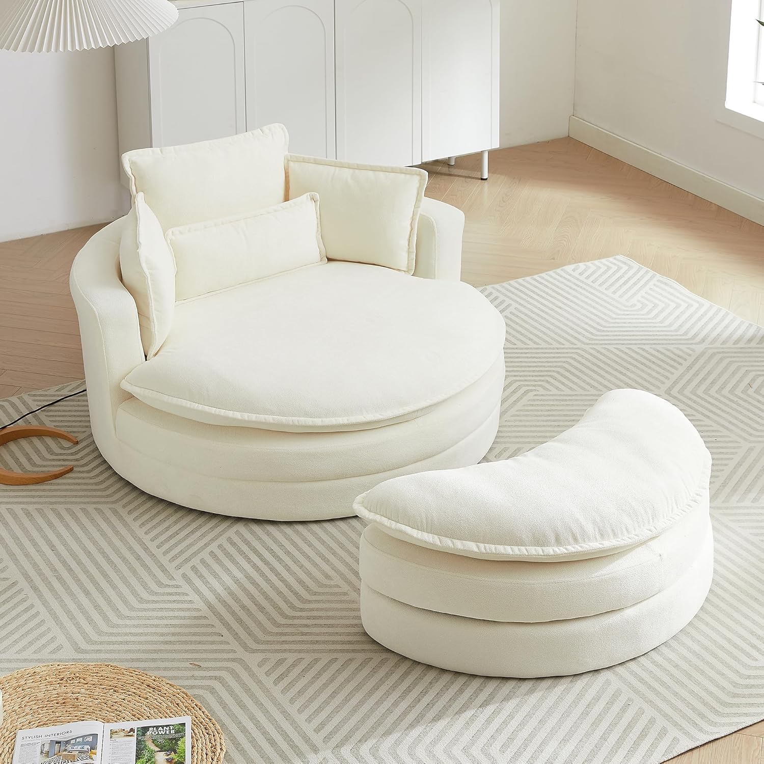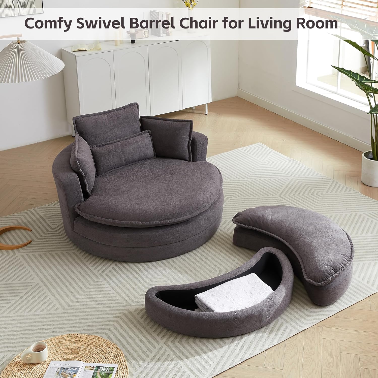 52'' Accent Swivel Barrel Chair with Storage Ottoman,Modern Oversize Round Swivel Leisure Armchair for 4 Pillows, Chenille Fabric for Living Room,Hotel,Club Lounge Chair,Grey…